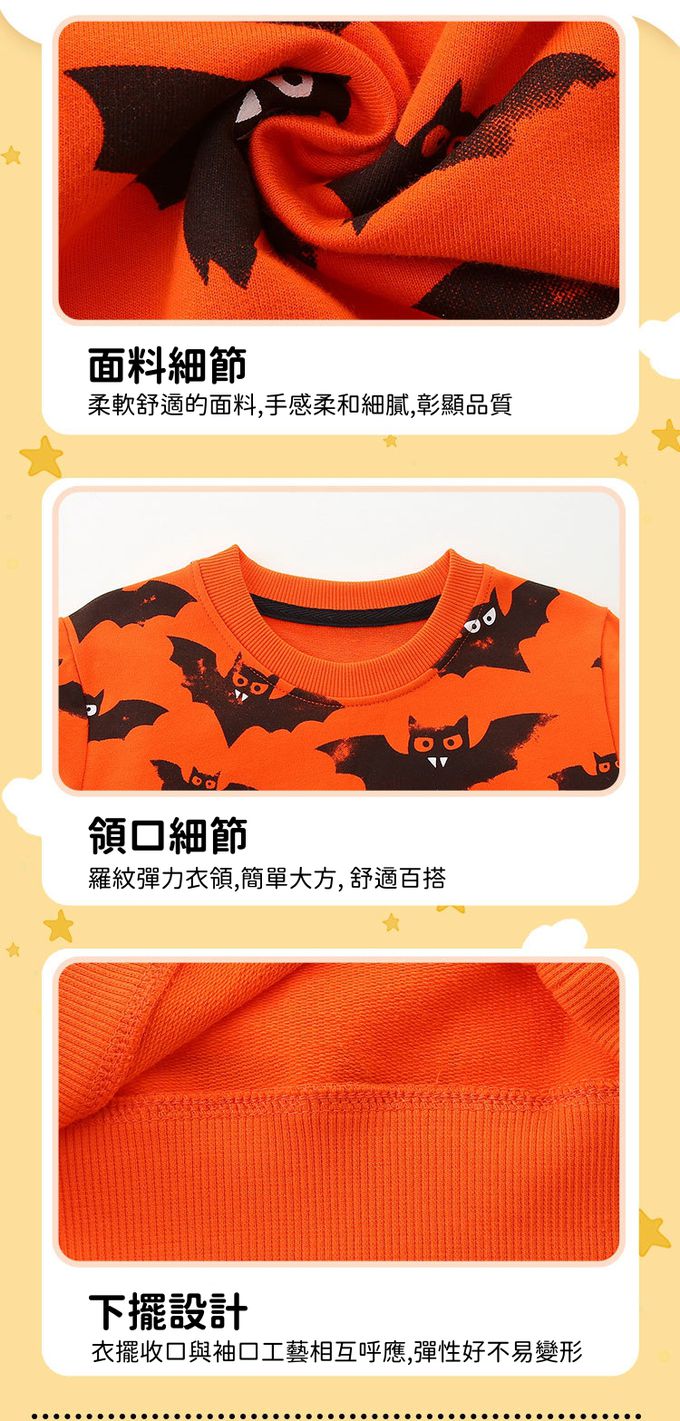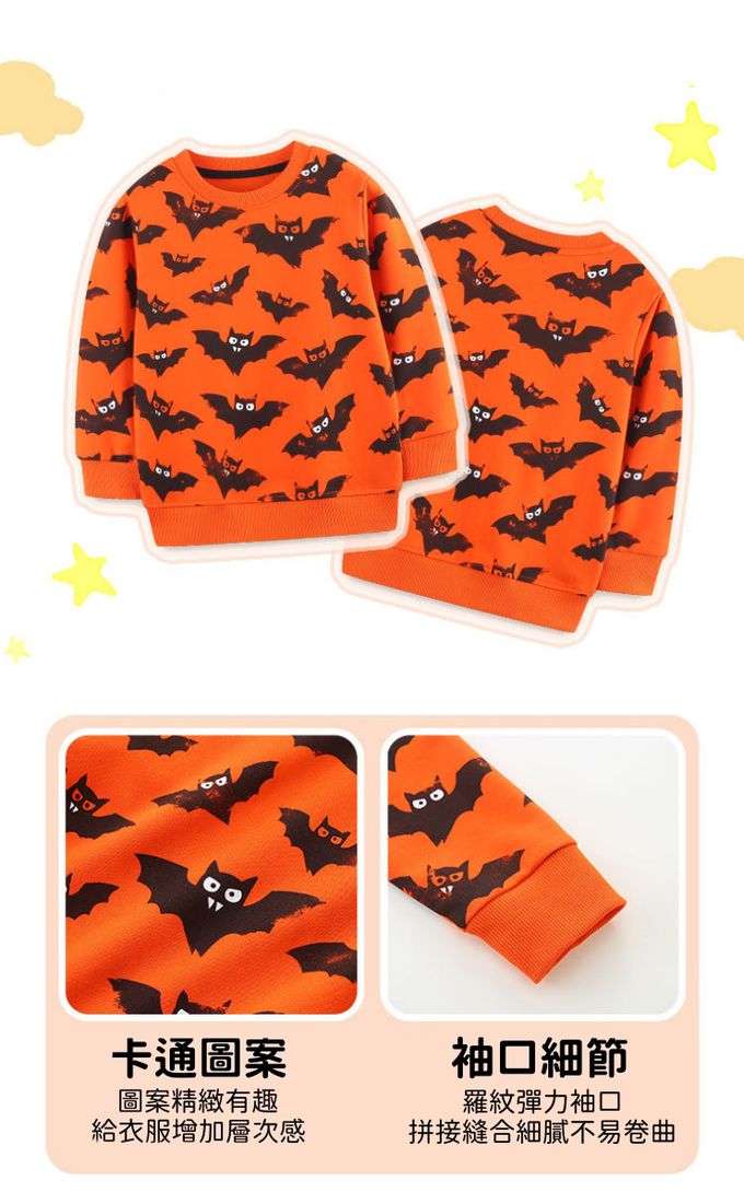 [萬聖節]純棉圓領長袖上衣/大學t-滿滿蝙蝠-橘色