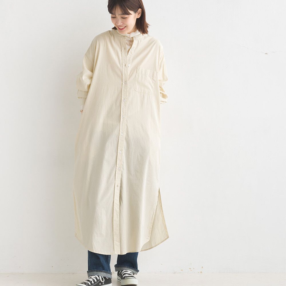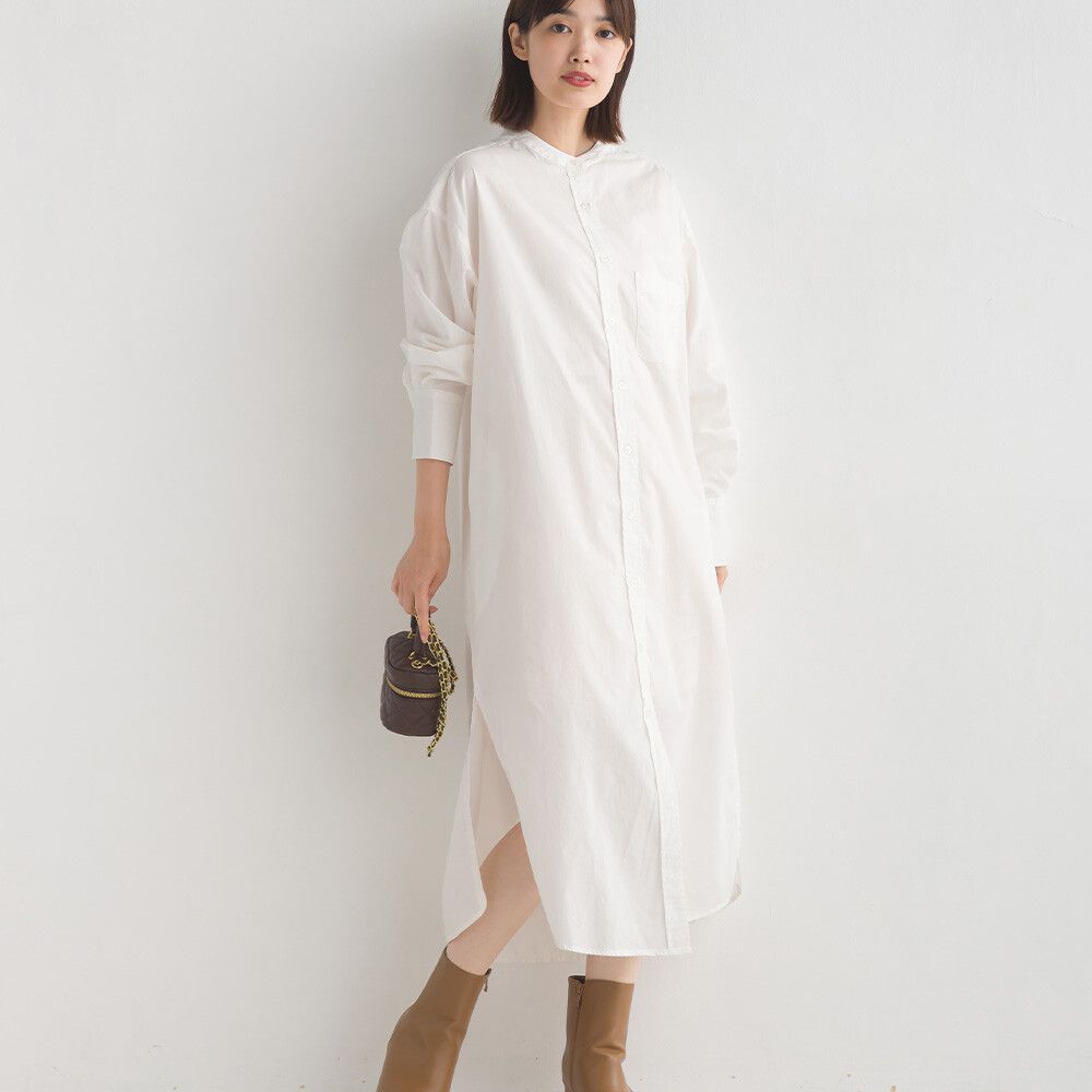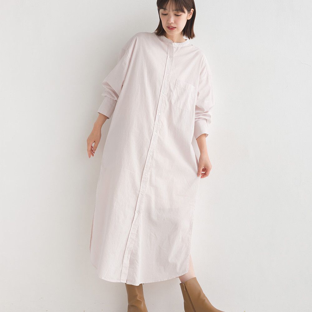 100%棉 簡潔俐落襯衫式長袖洋裝