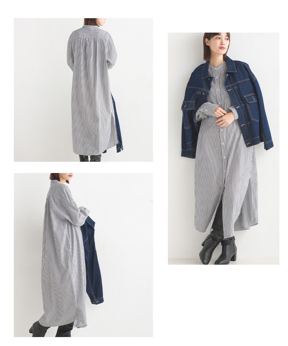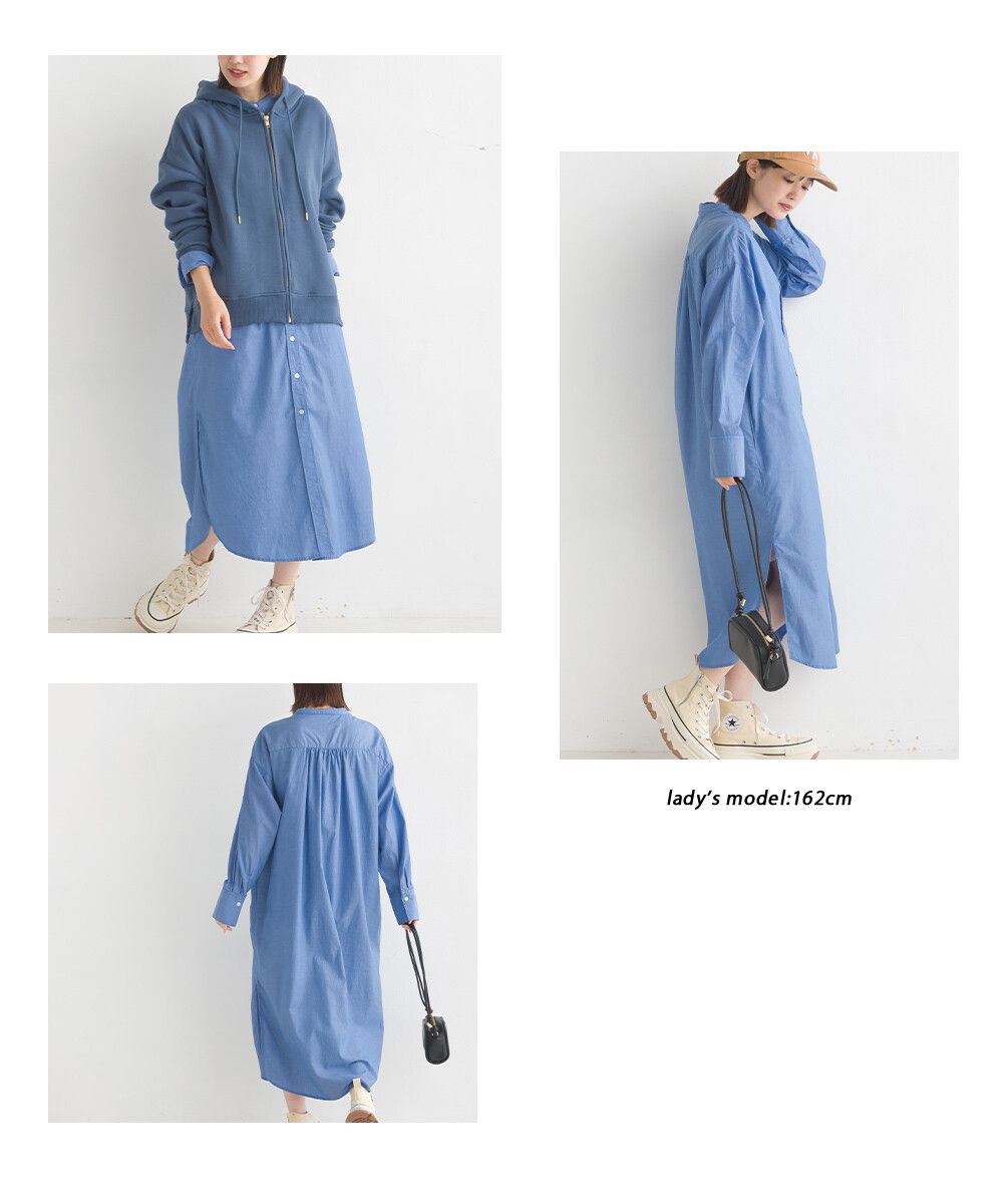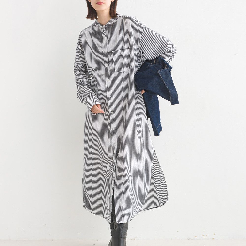 100%棉 簡潔俐落襯衫式長袖洋裝