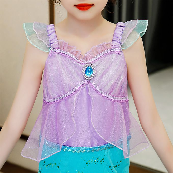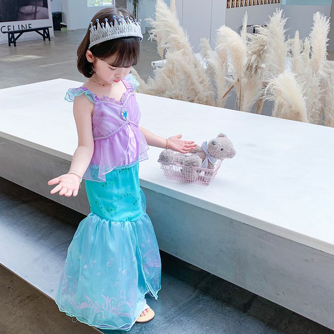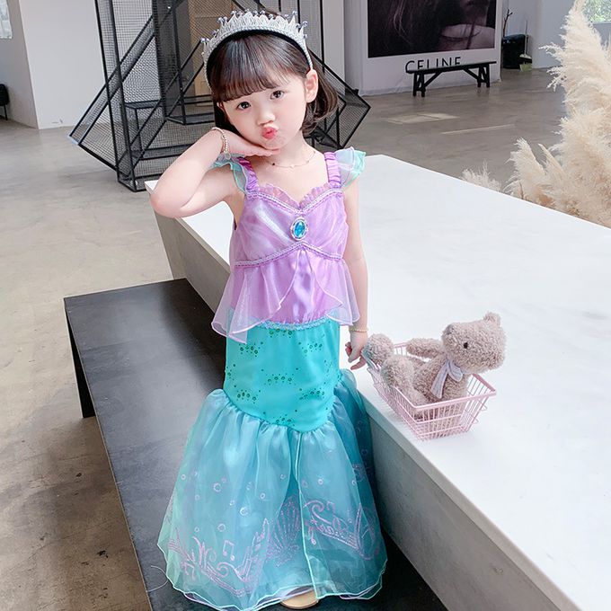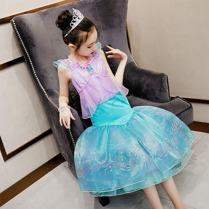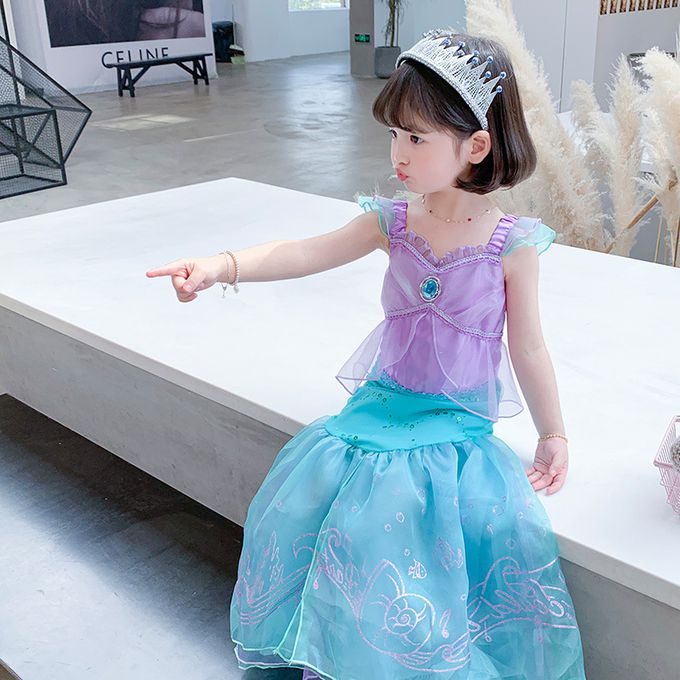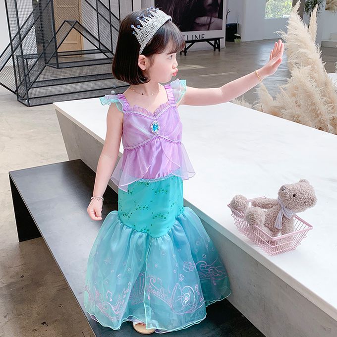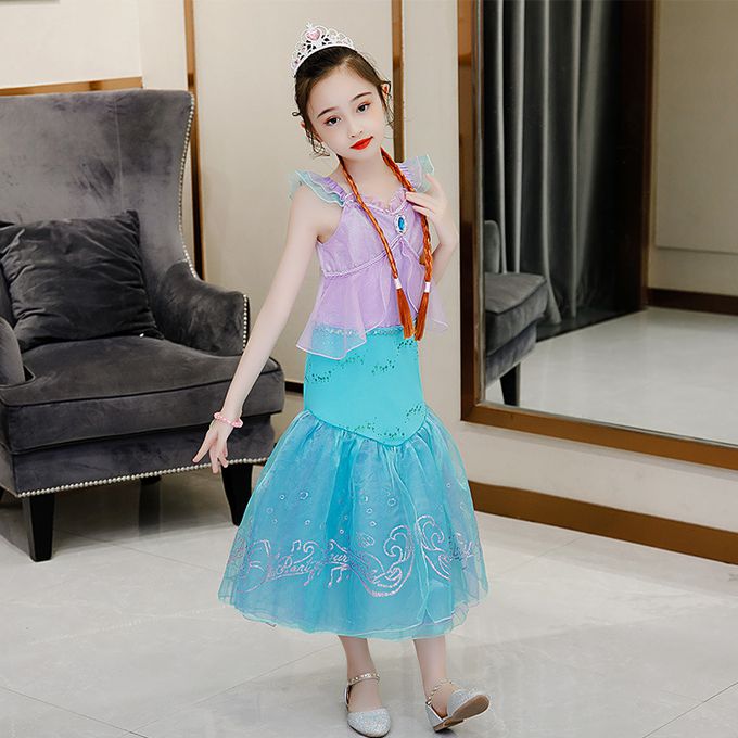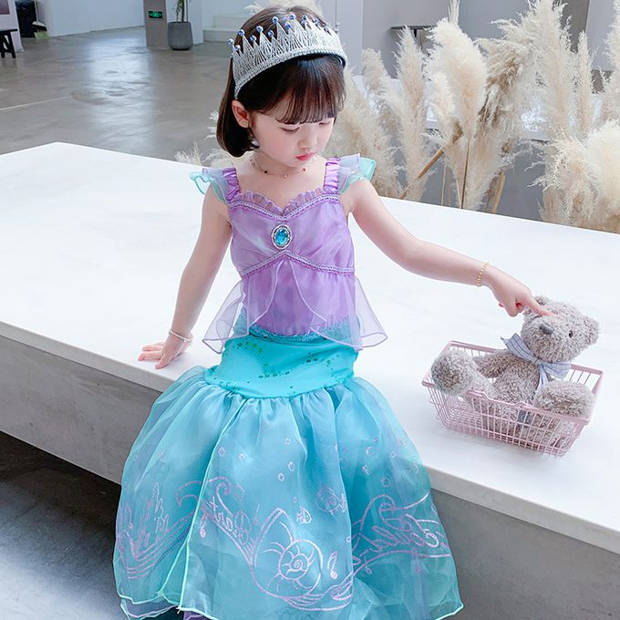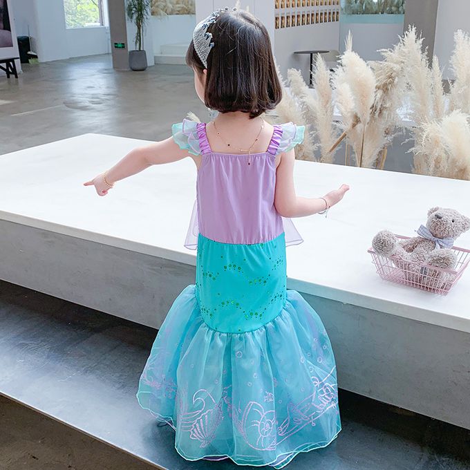 無袖造型連身公主裙-卡通人物-美人魚-藍紫色