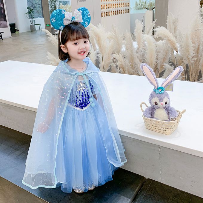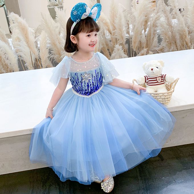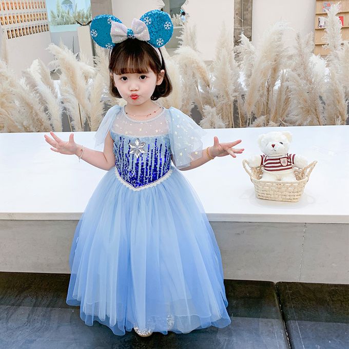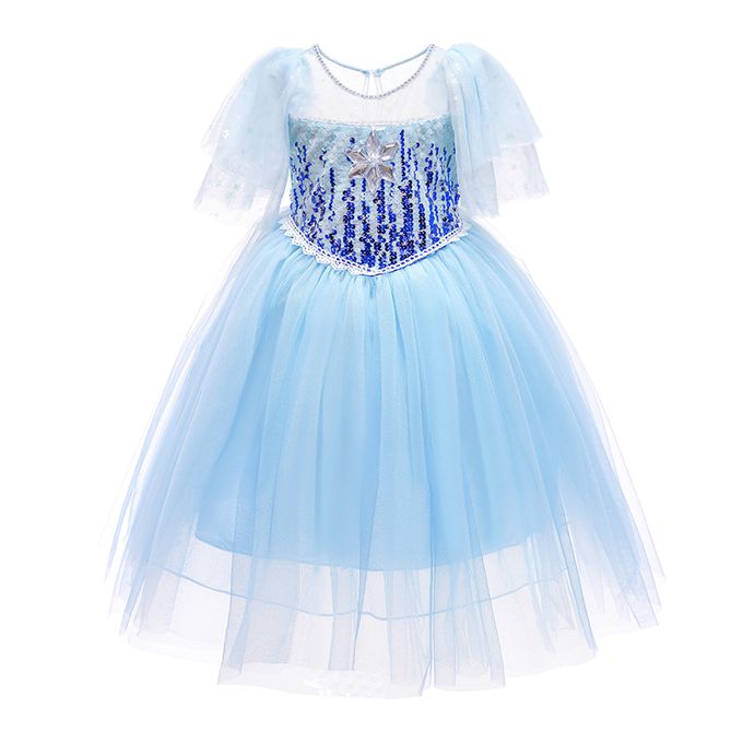 小飛袖造型連身公主裙-冰雪亮片-藍色