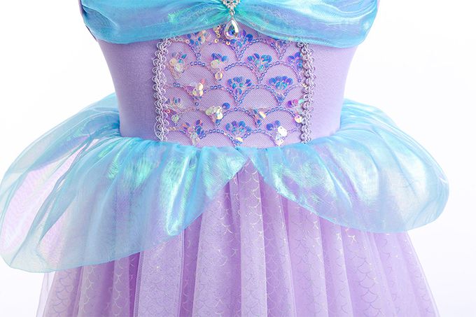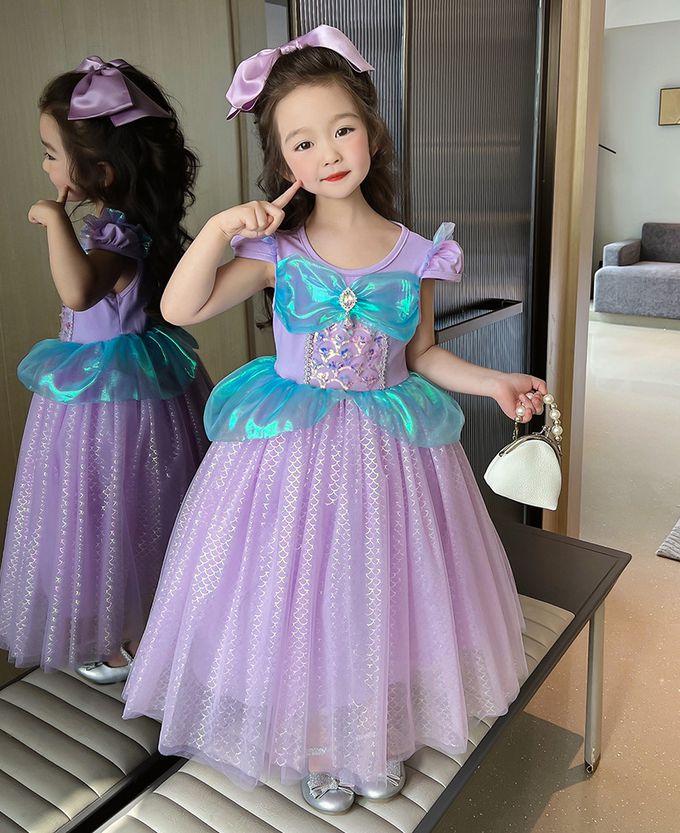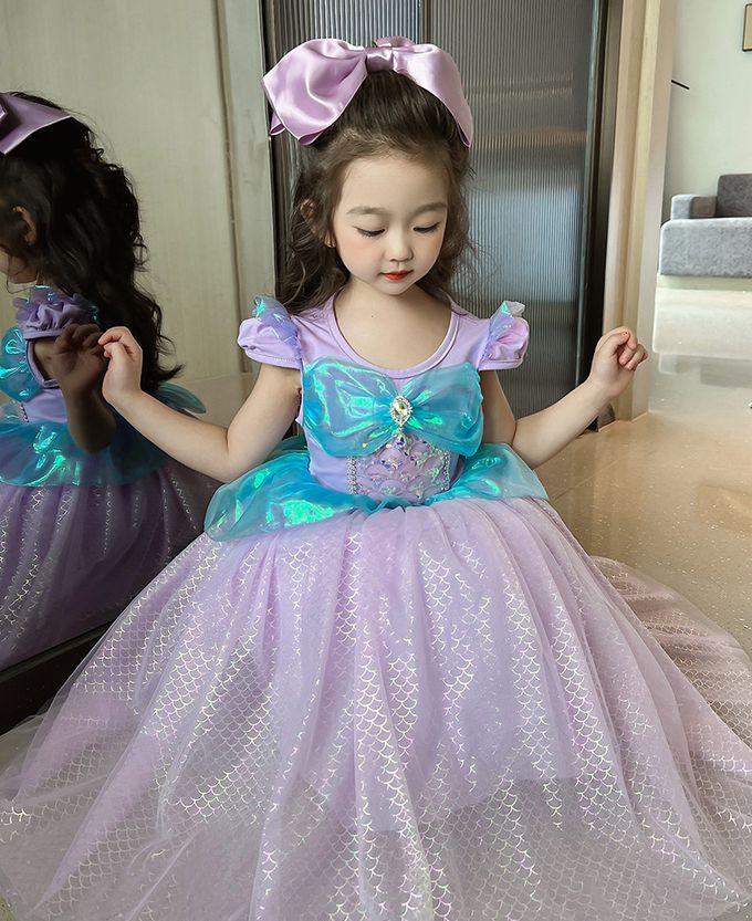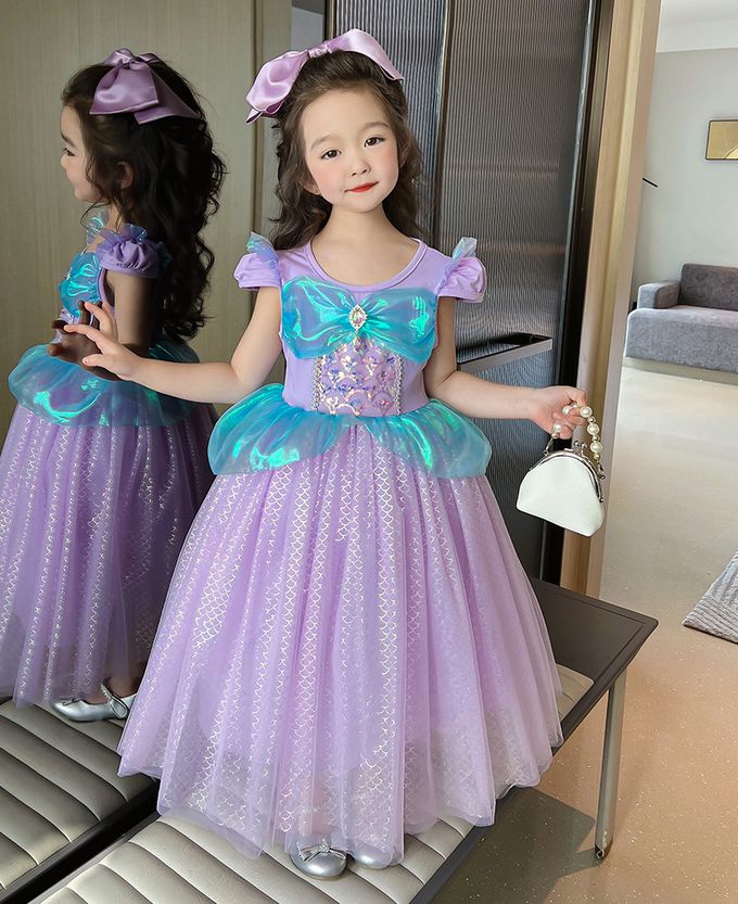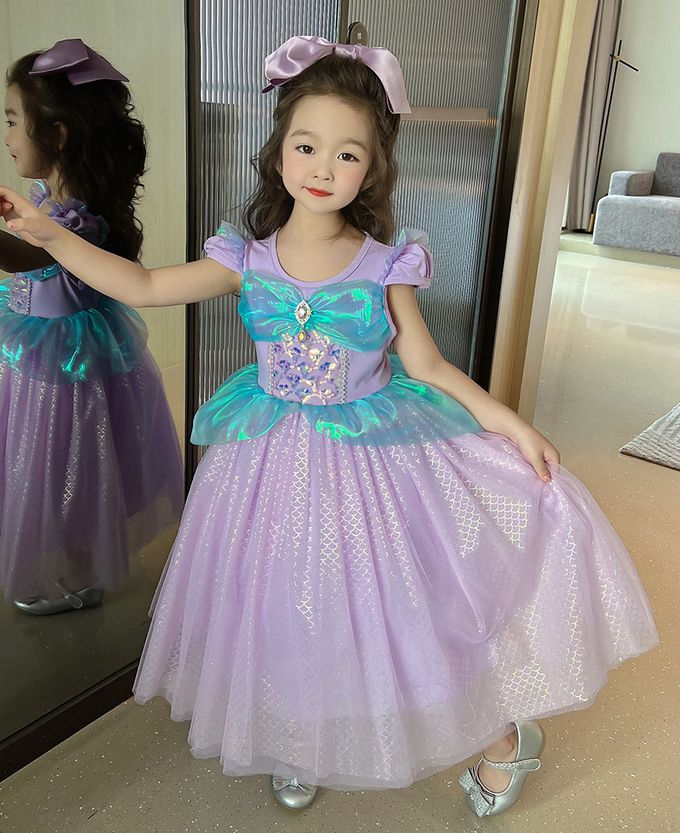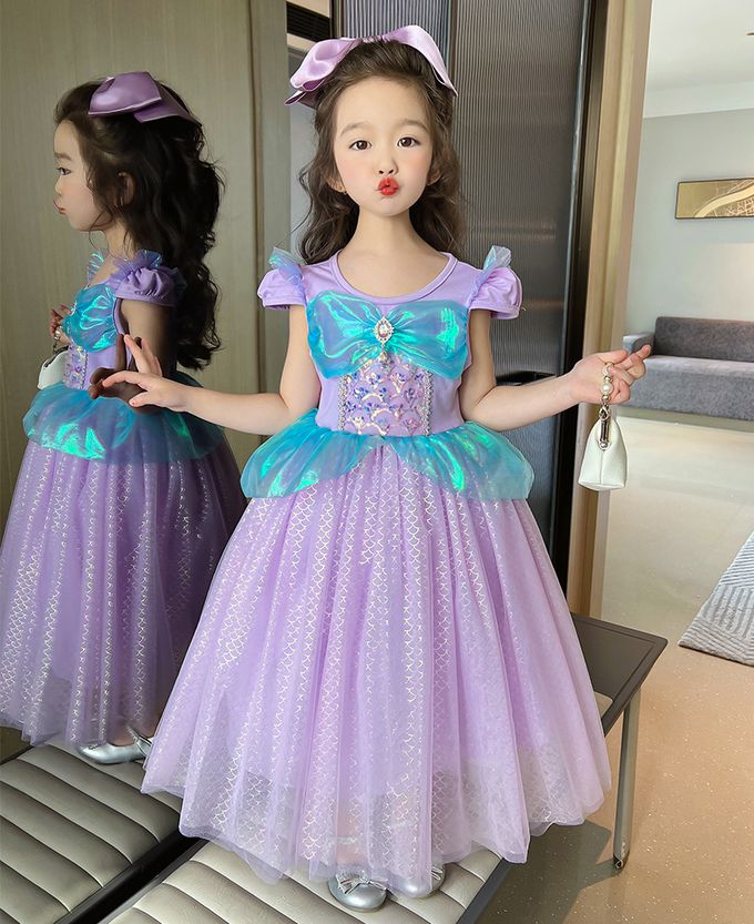 小包袖造型連身公主裙-卡通人物-美人魚-紫色