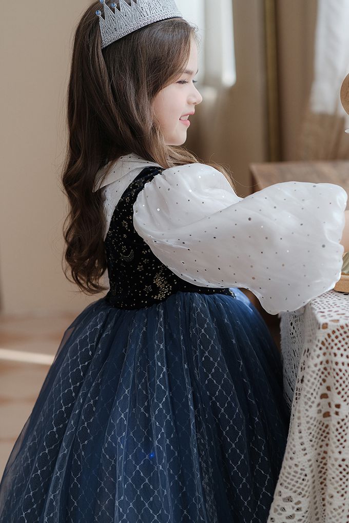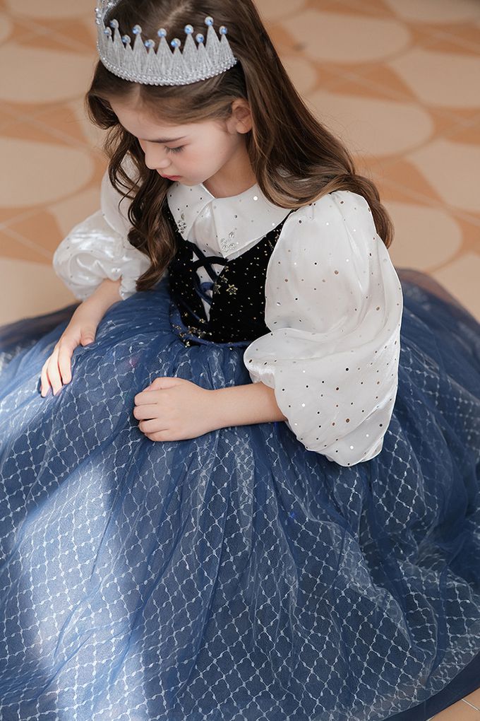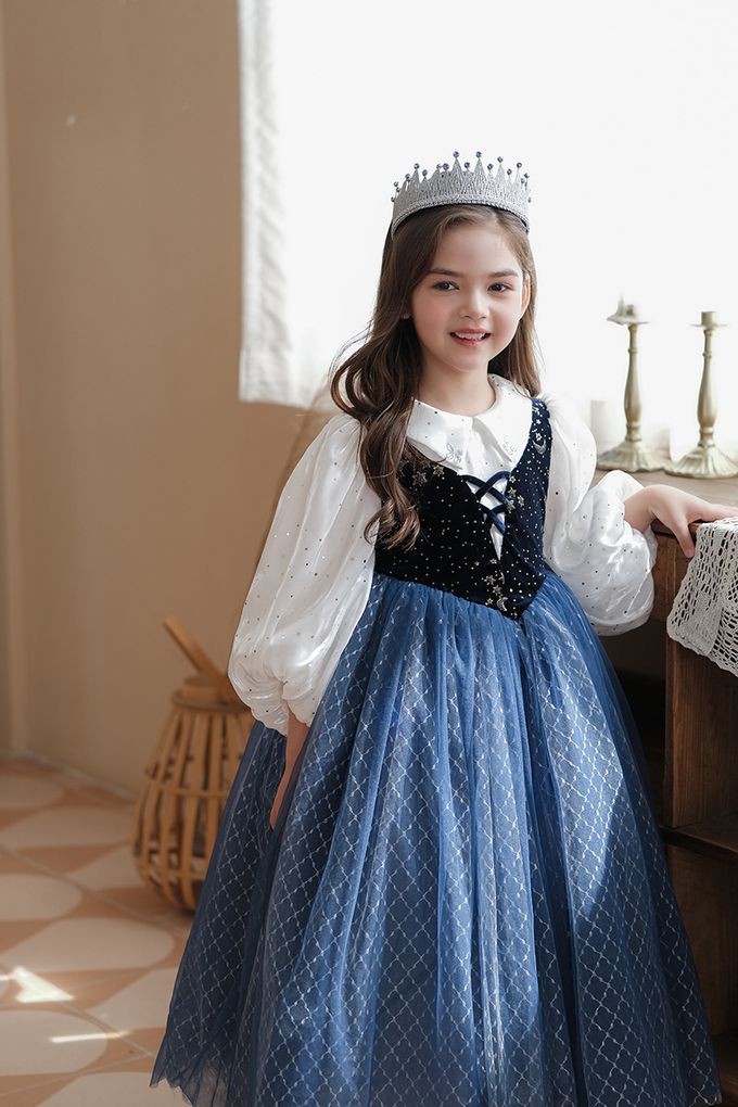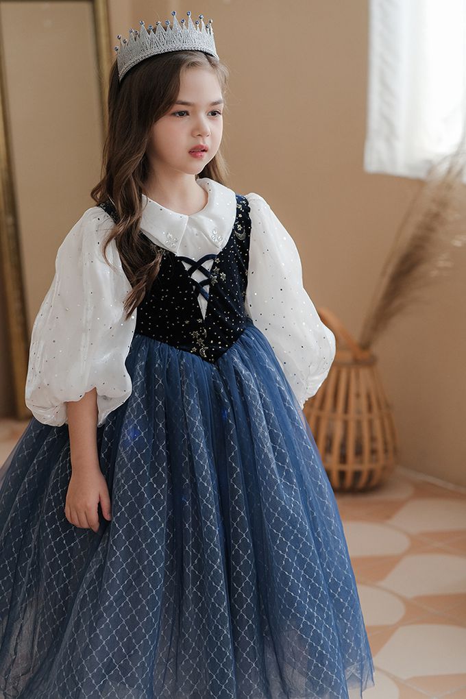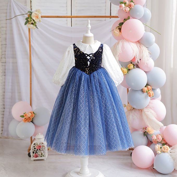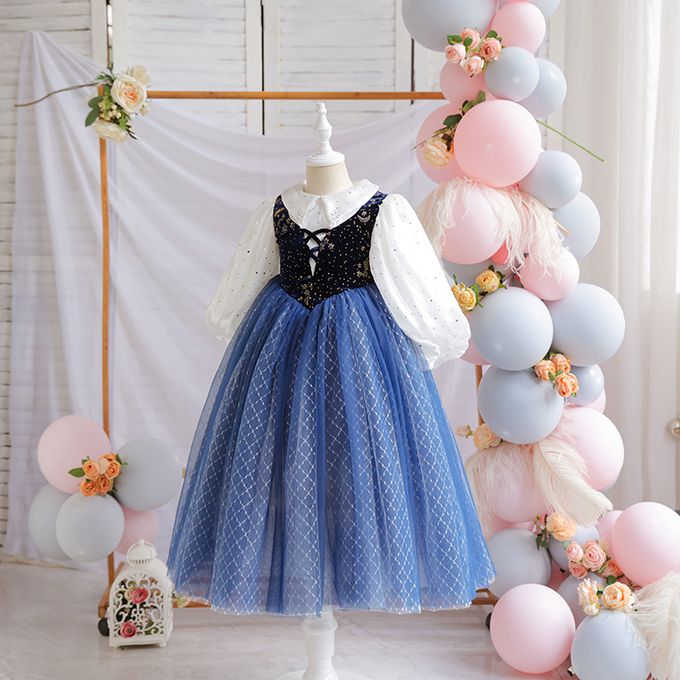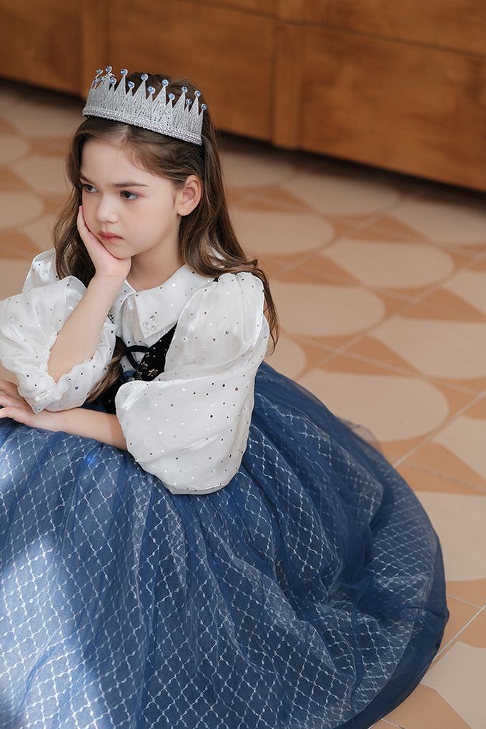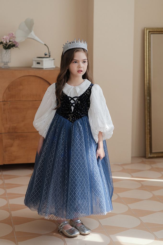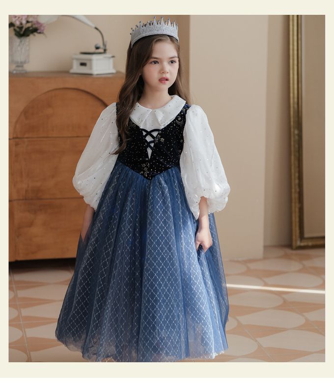 Princess - 八分澎澎袖造型連身公主裙-經典藍色公主
