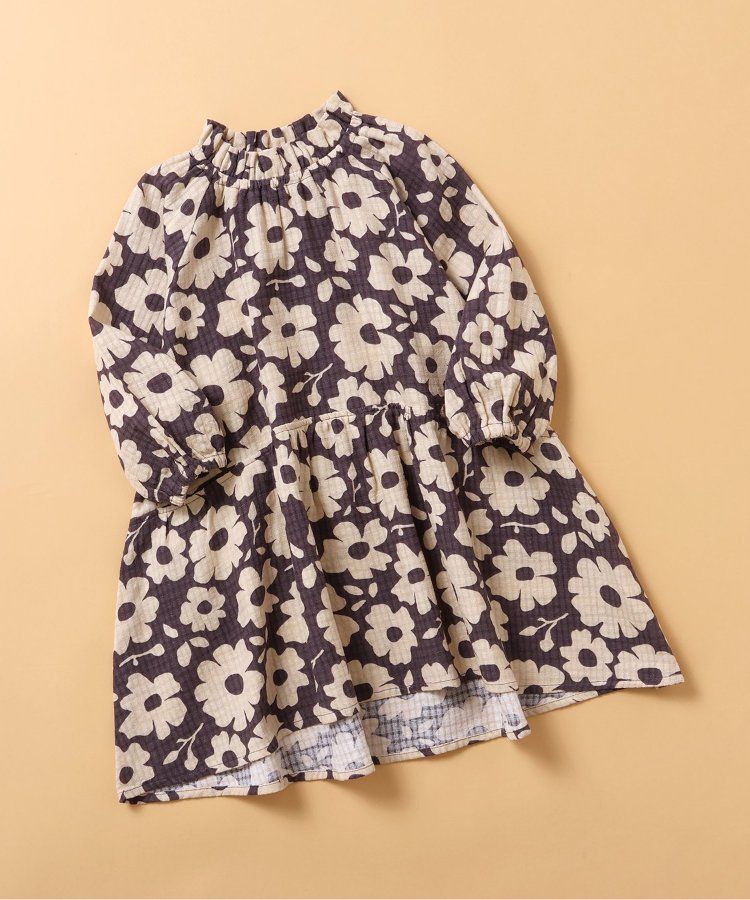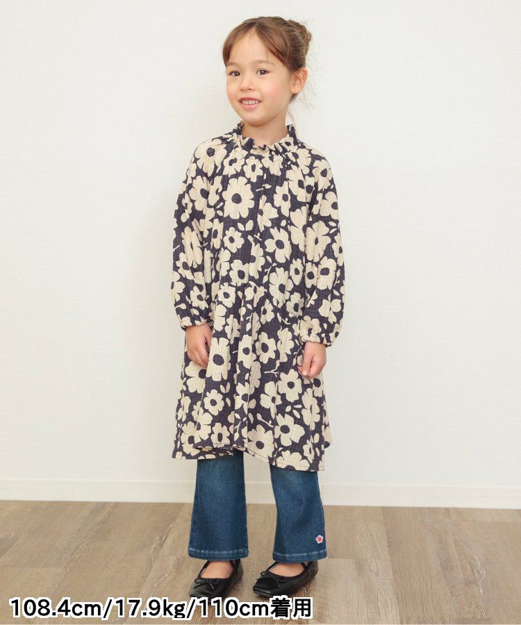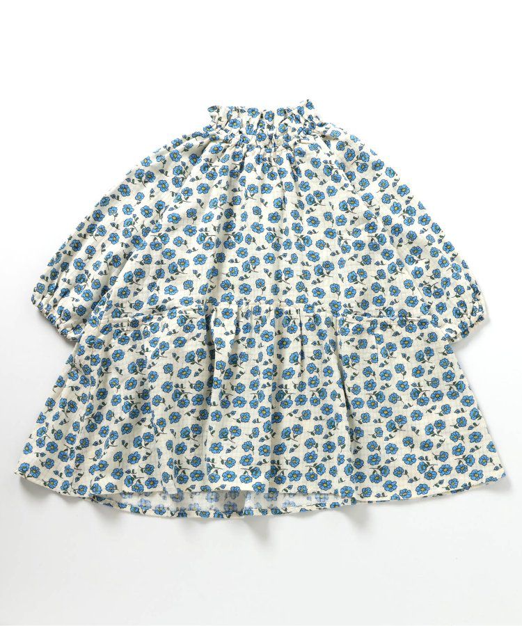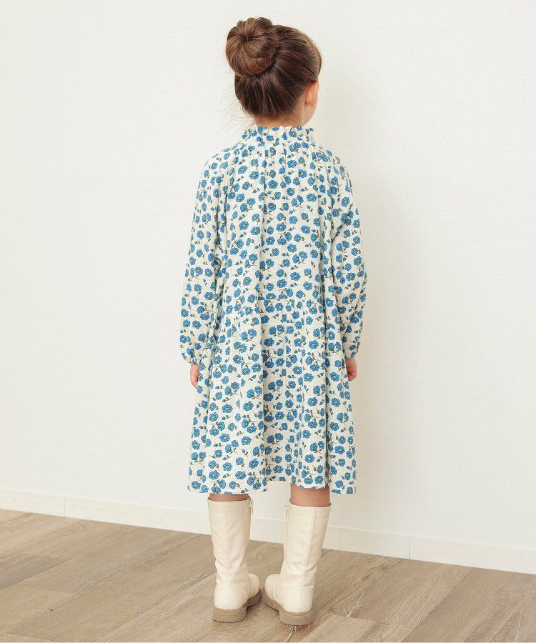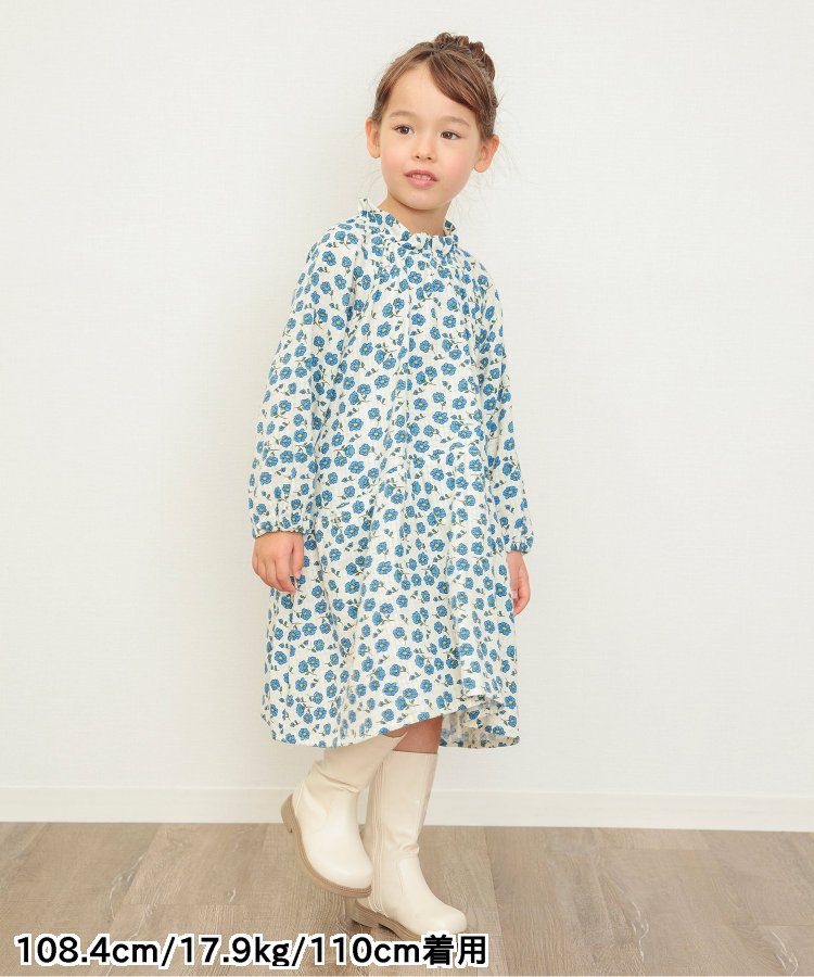 小立領清新花朵長袖洋裝
