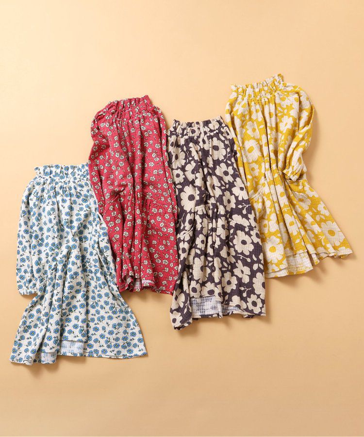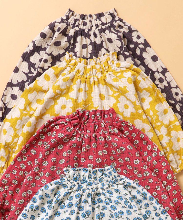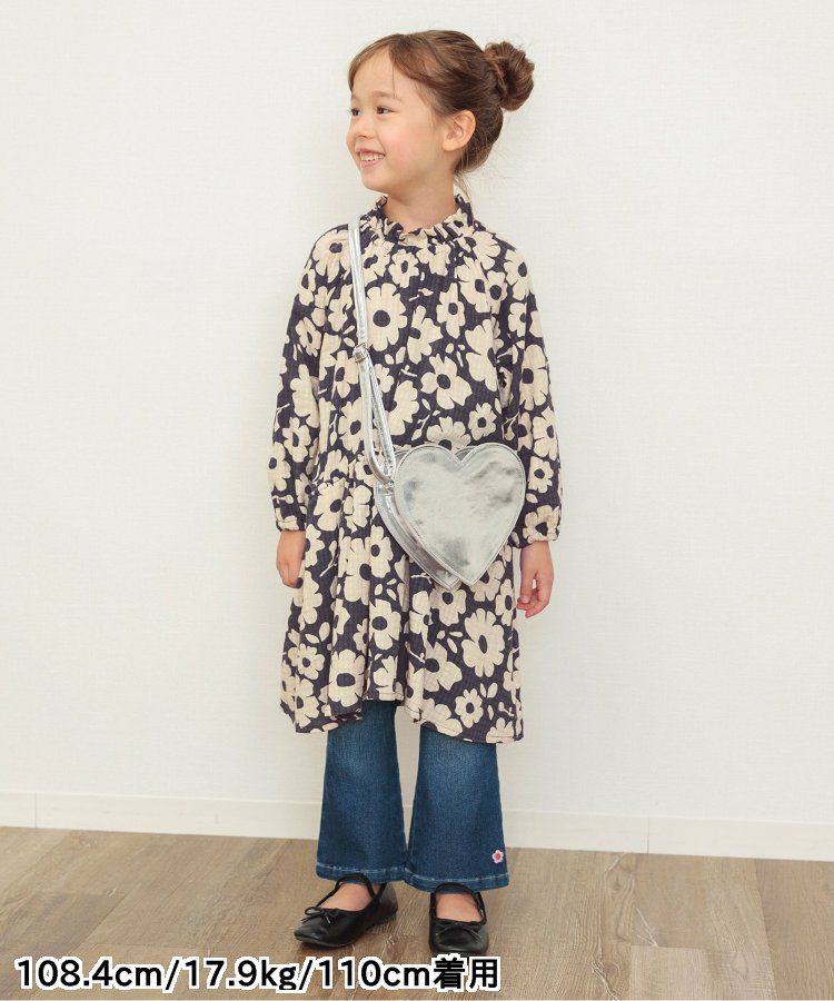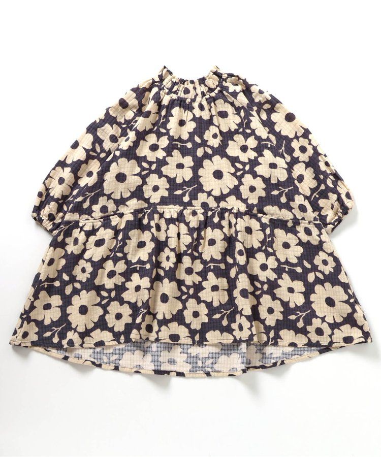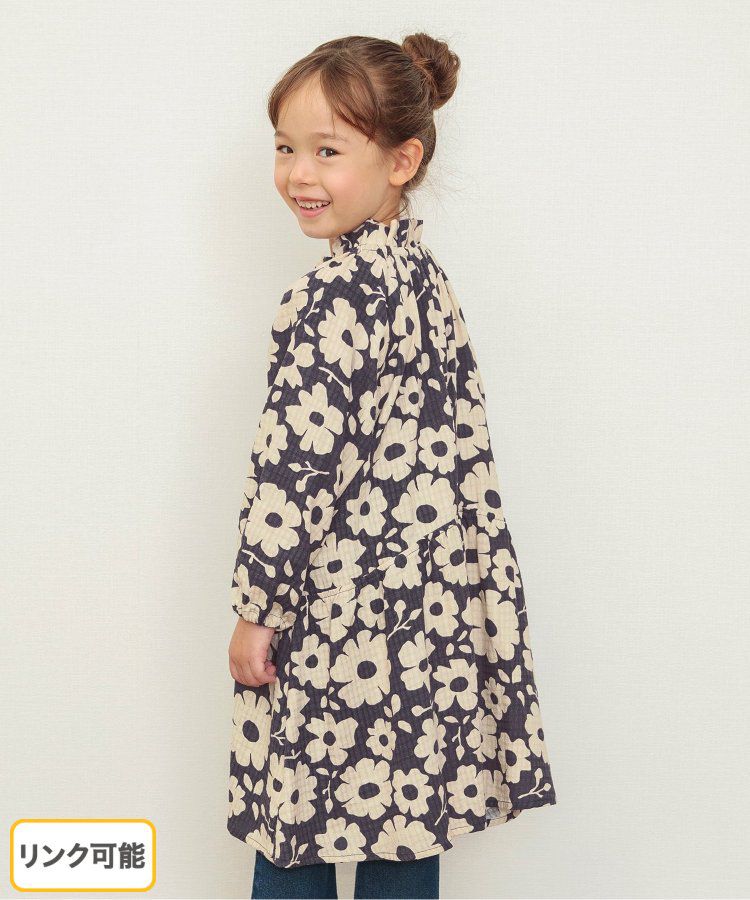 小立領清新花朵長袖洋裝