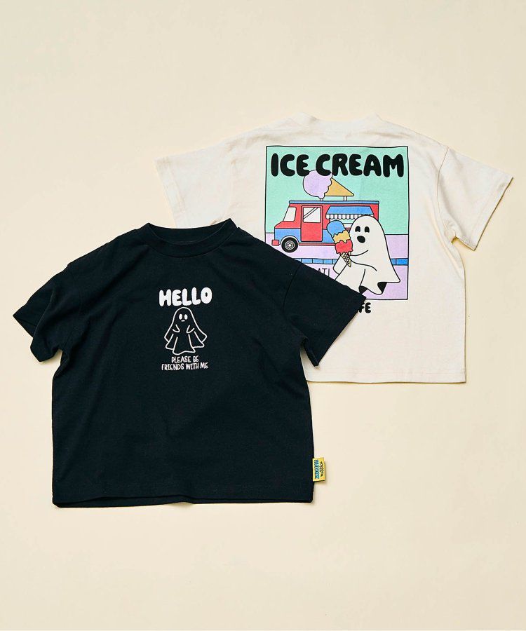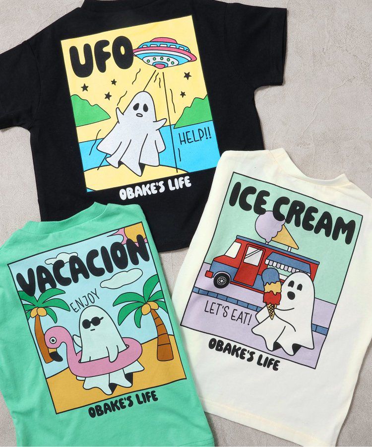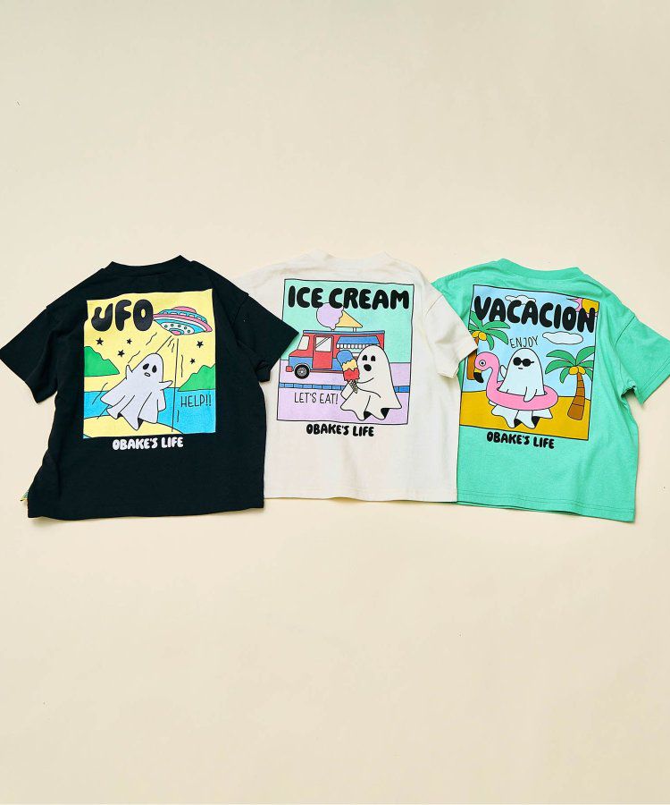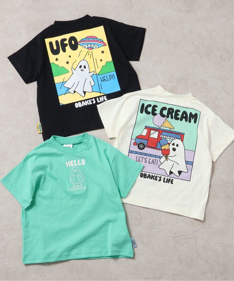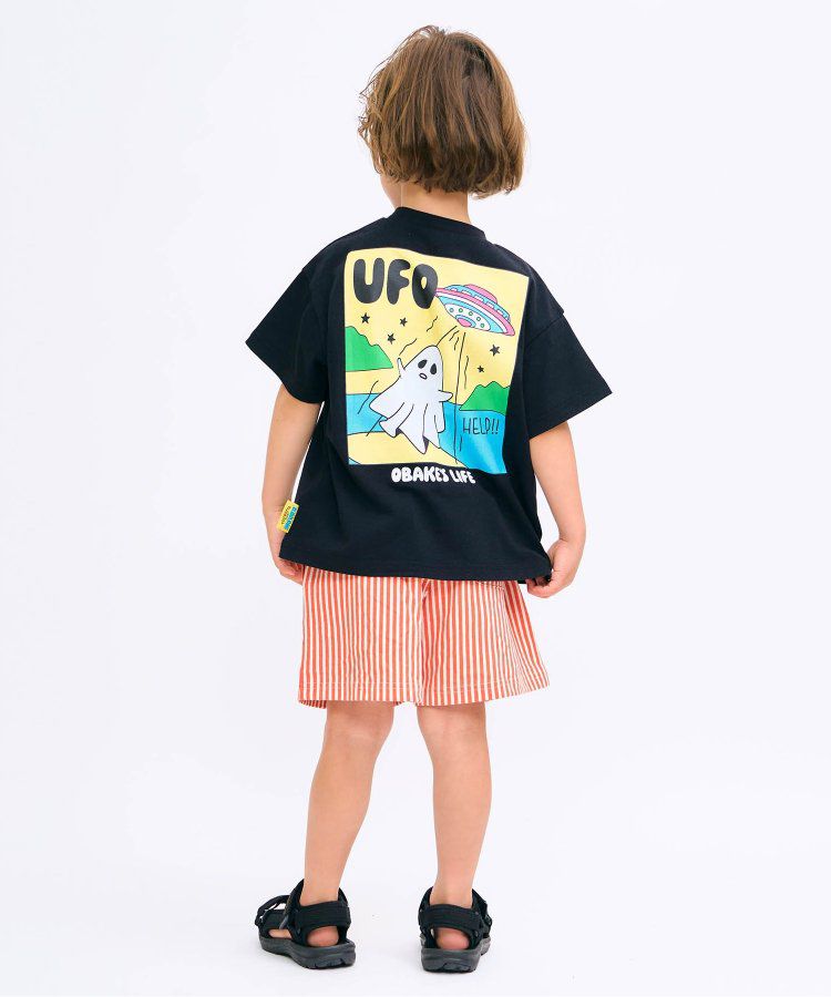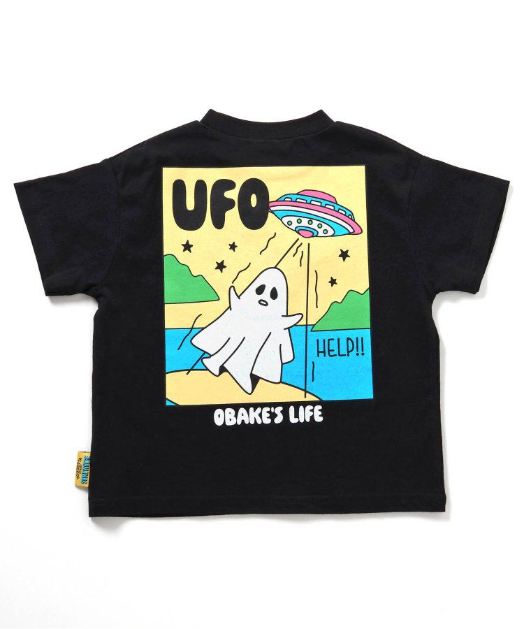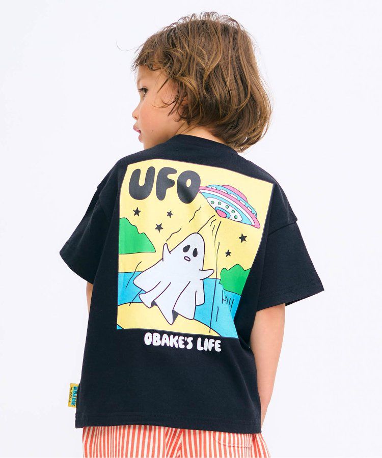 日本 BREEZE - 俏皮幽靈印花短袖上衣-UFO來了-黑
