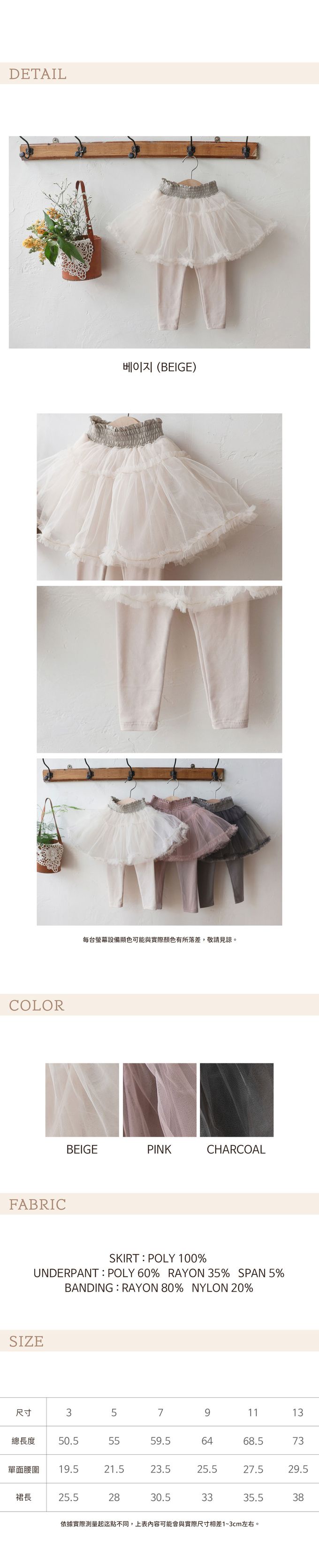 韓國 PuellaFLO - 寬鬆緊腰浪漫網紗裙內搭褲-米