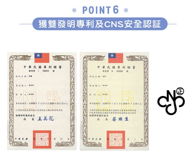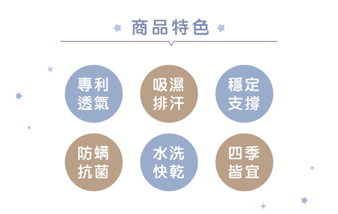 1.MIT製造,採用雙發明專利的3D立體纖維層;透氣散熱,吸震耐重發明字號I298625 / 專利字號M303868