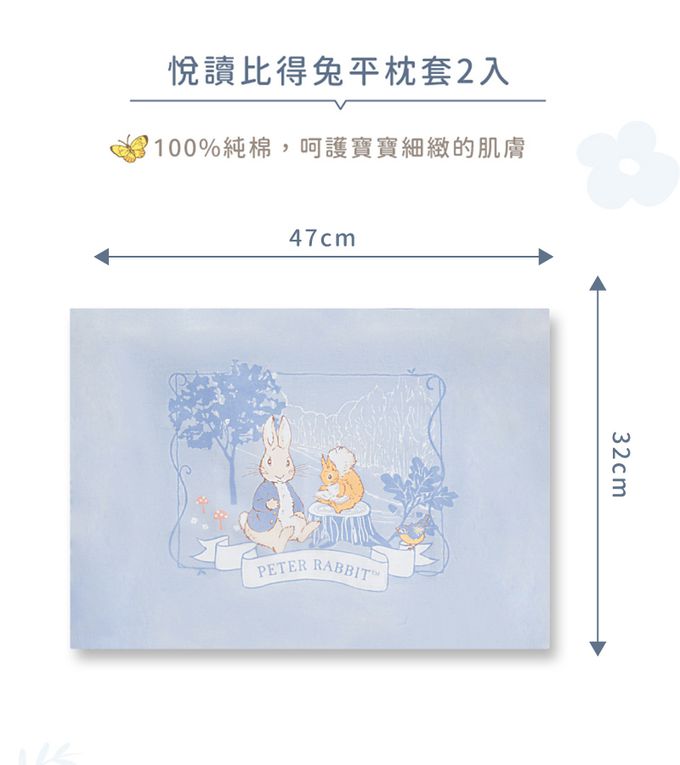 ■ 商品說明:悅讀比得兔寢具系列為寶寶嚴選高密度精梳棉面料,搭配典雅圖紋設計,呈現活潑純真氣息,提供寶寶溫馨、舒適的睡眠環境。
