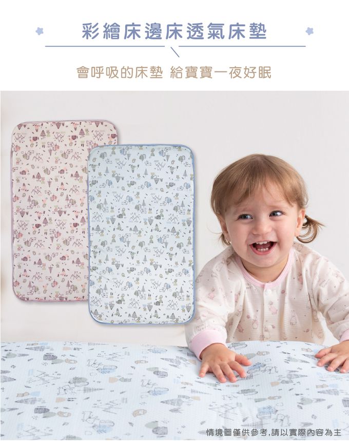 置於嬰兒床邊床或和式地板上使用,可直接使用本產品,或搭配奇哥床包包覆本品使用。