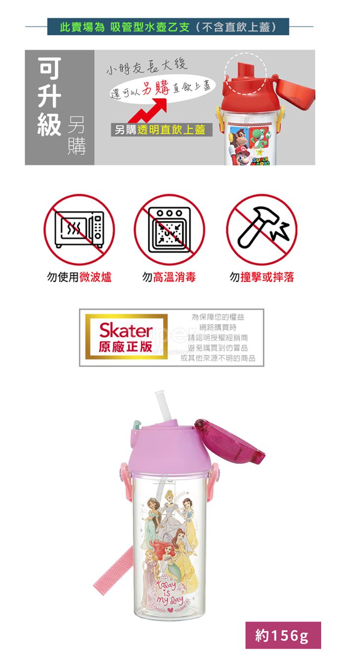 注意事項:●請勿置入於微波爐,洗碗機,烘碗機及蒸汽消毒鍋使用,可能會導致產品變形或圖案剝落。 ●此為吸管型,請再度確認容量大小,為您所需要,再行購買。