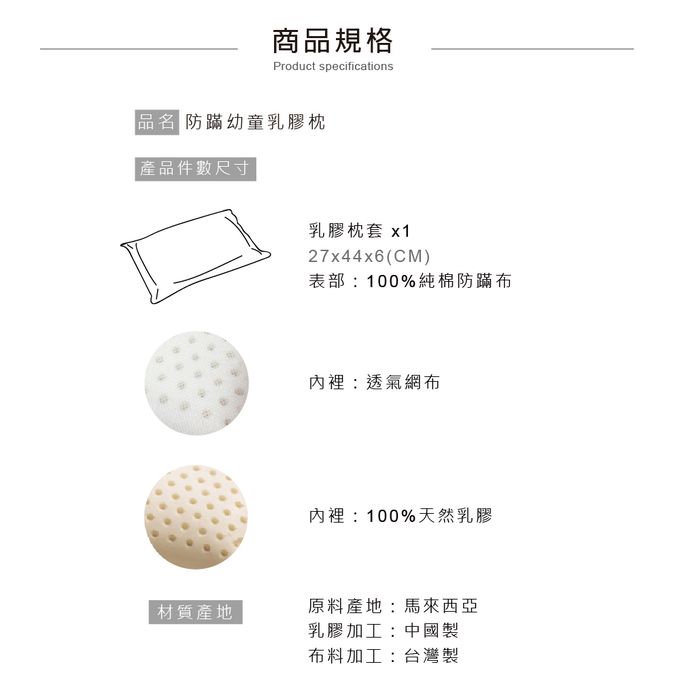 - 品名:幼童乳膠枕(學齡期兒童適用)