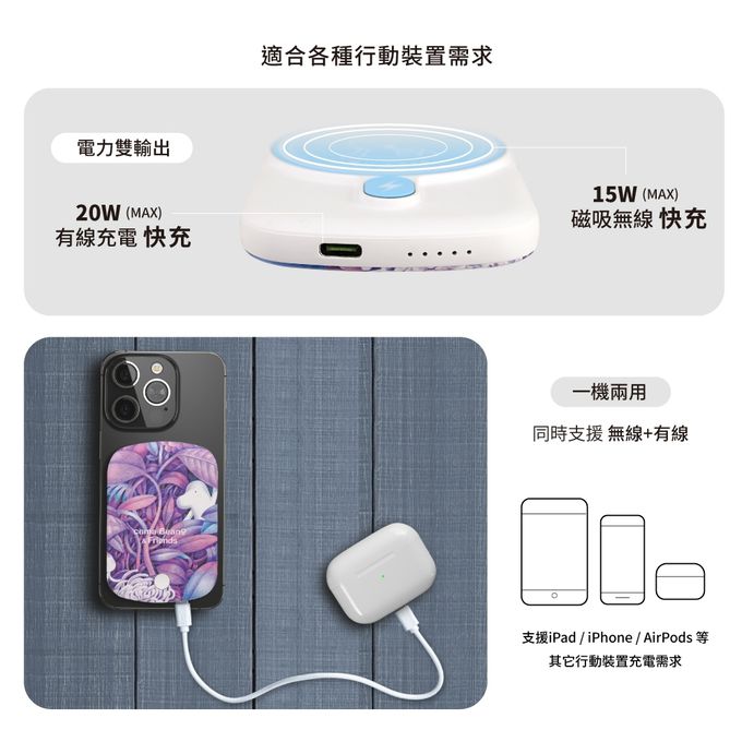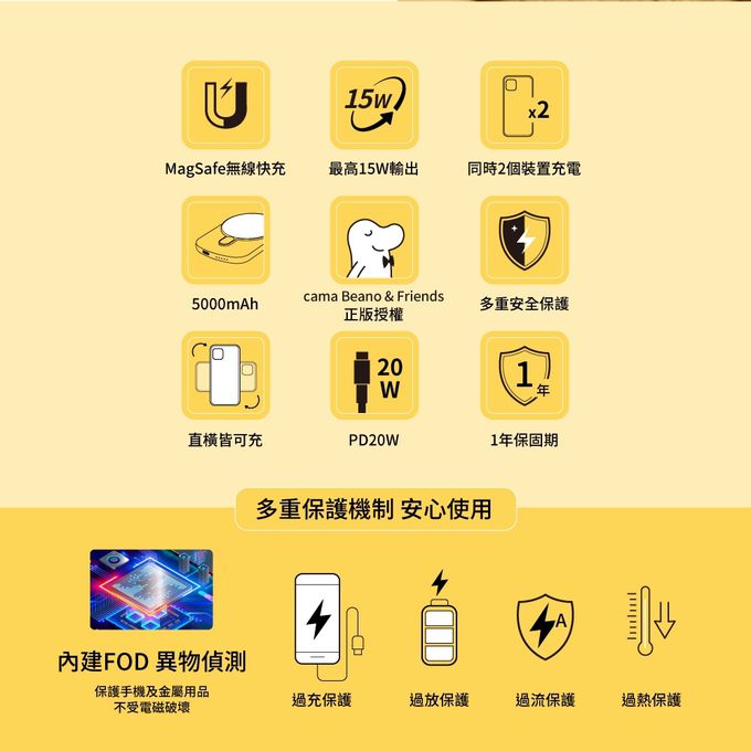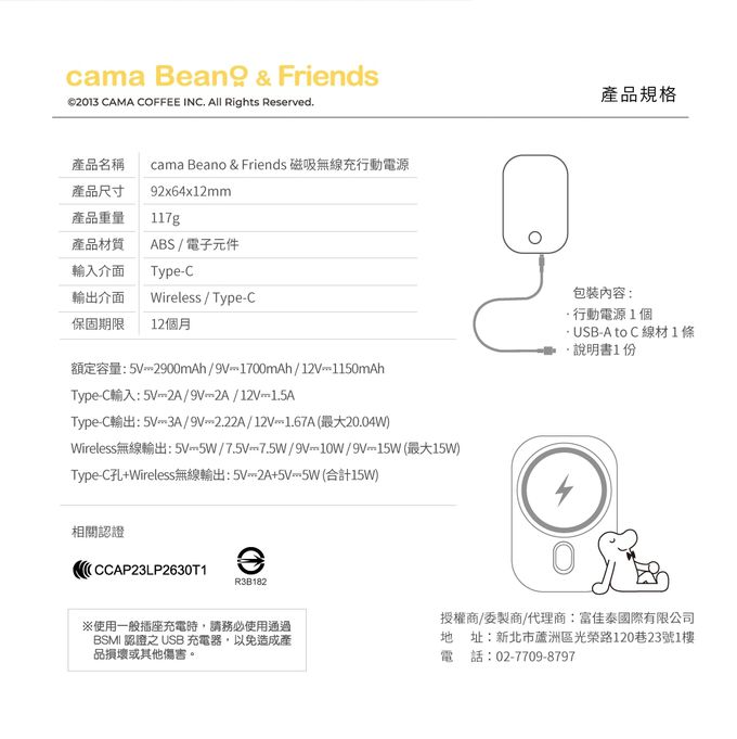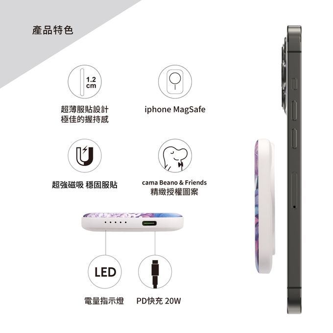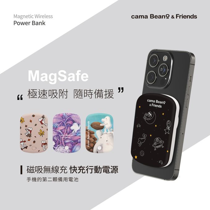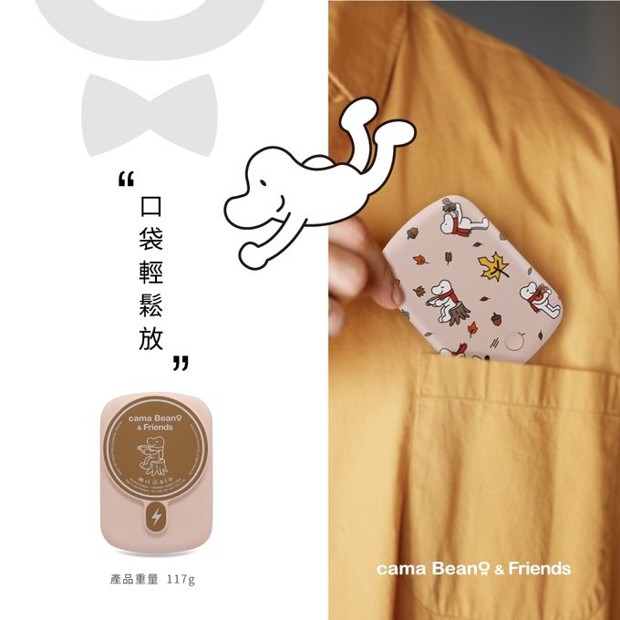 cama Beano & Friends - 超薄磁吸無線充 快充行動電源-咖啡豆陣-117g