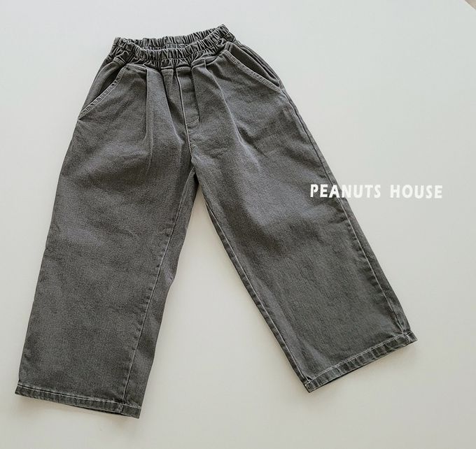 韓國 Peanuts House - 鬆緊腰牛仔落地褲-灰