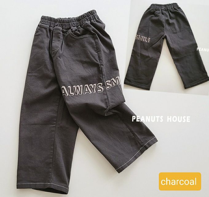 韓國 Peanuts House - 鬆緊腰好搭配寬鬆長褲-墨灰