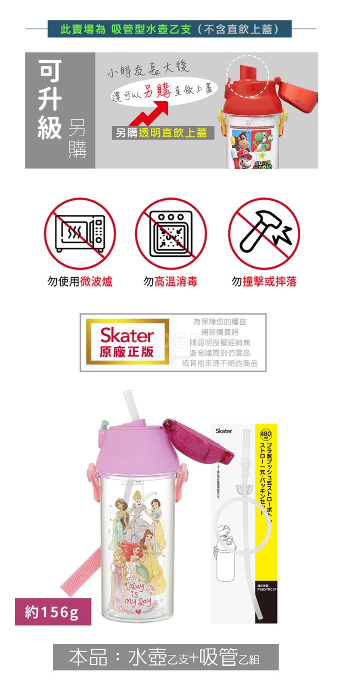 吸管型定量飲水壺+吸管組-迪士尼公主-480ml