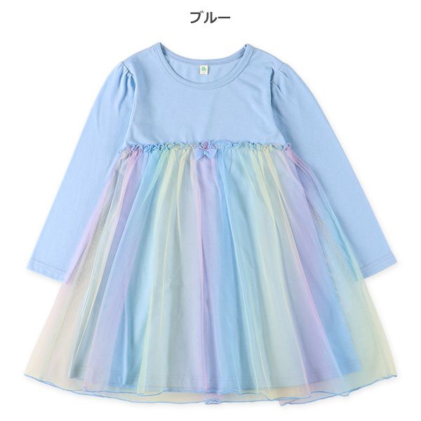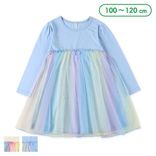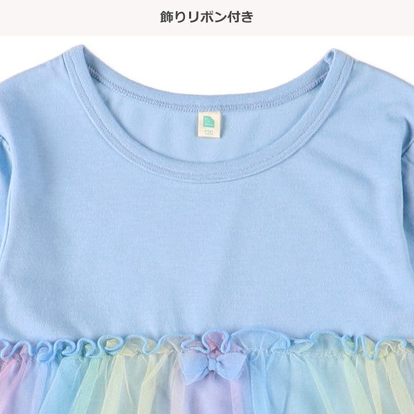 ![日本西松屋 - 華夫格異素材絲帶長袖上衣-白x藍紫]()