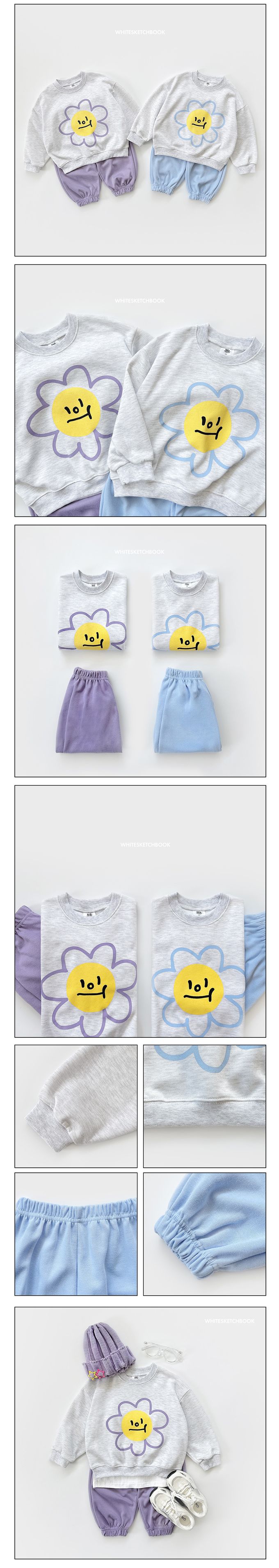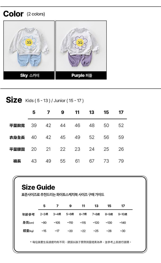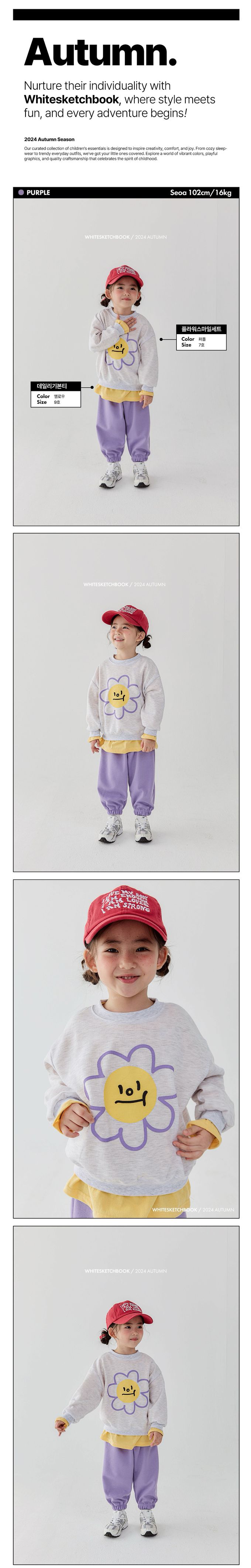 韓國 W.S.B. - 臉孔花朵印長袖套裝-淺灰X紫
