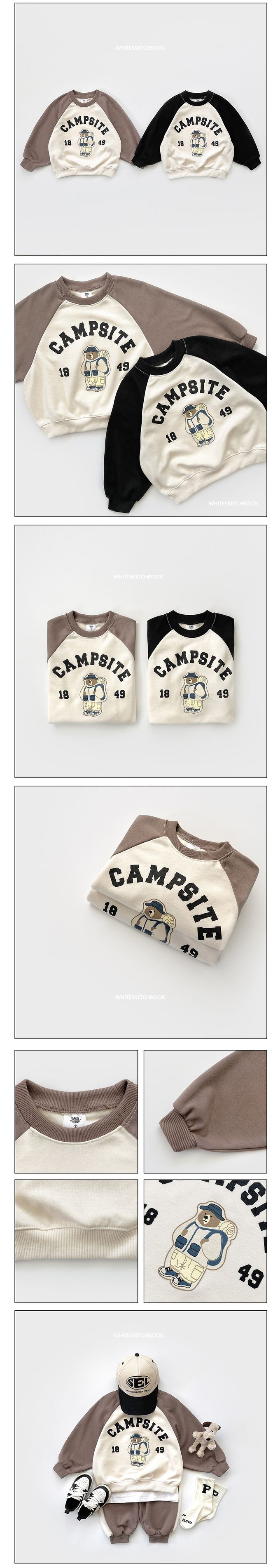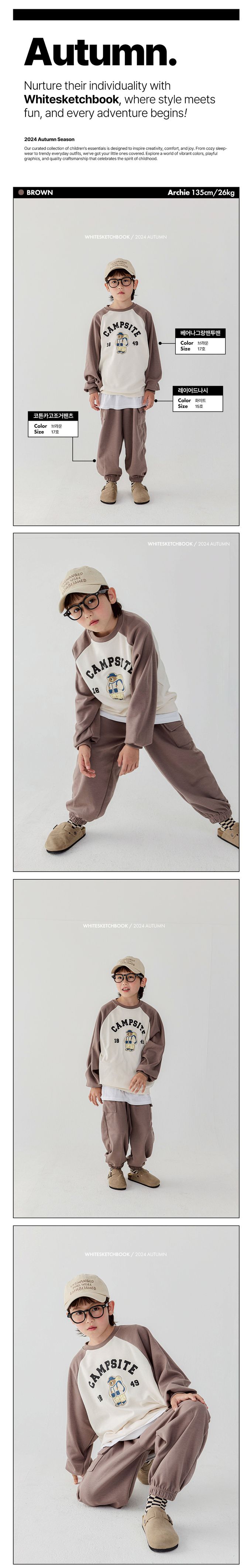 韓國 W.S.B. - 登山熊熊長袖大學T-可可咖