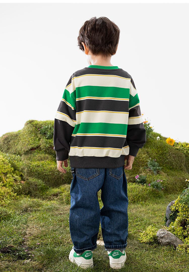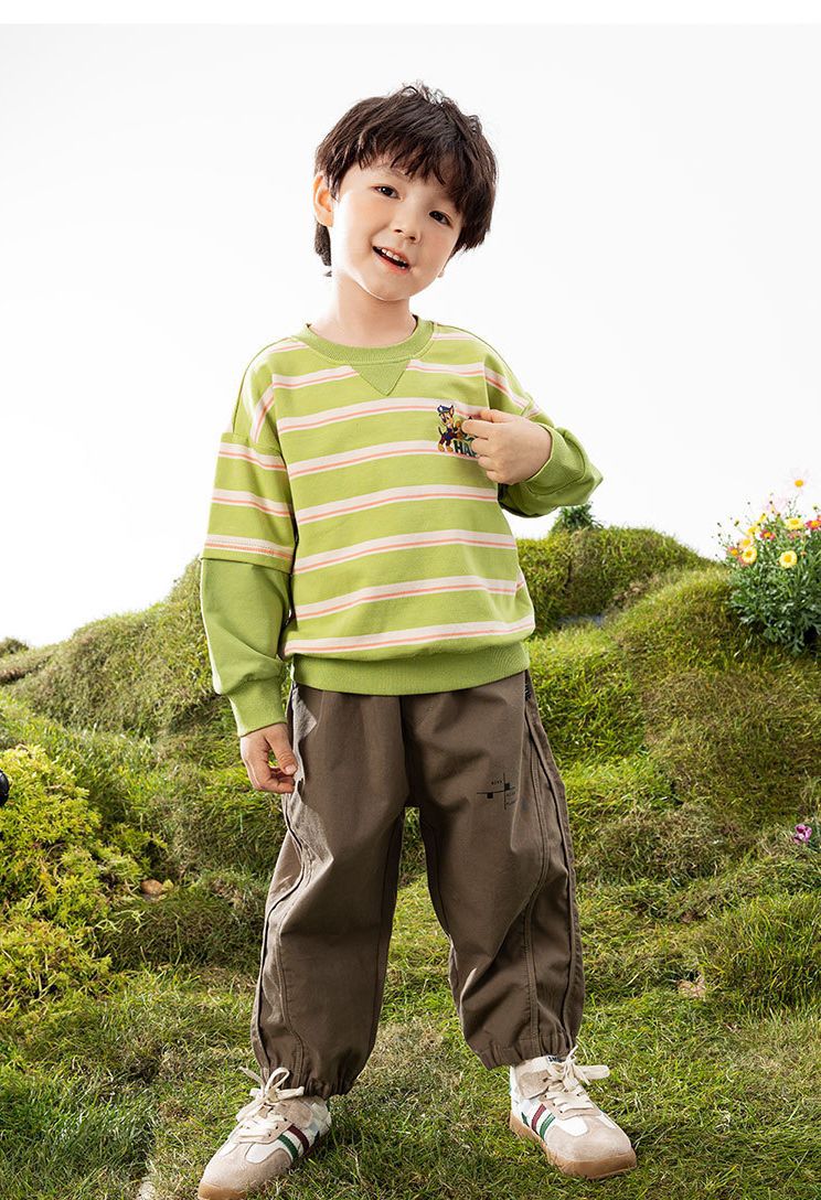 卡通汪汪隊圓領條紋長袖上衣/大學T-卡通人物阿奇-深灰綠