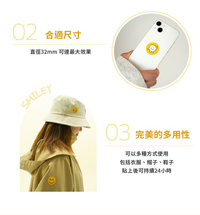 黏性極佳,即使貼在衣物上都不用擔心脫落!