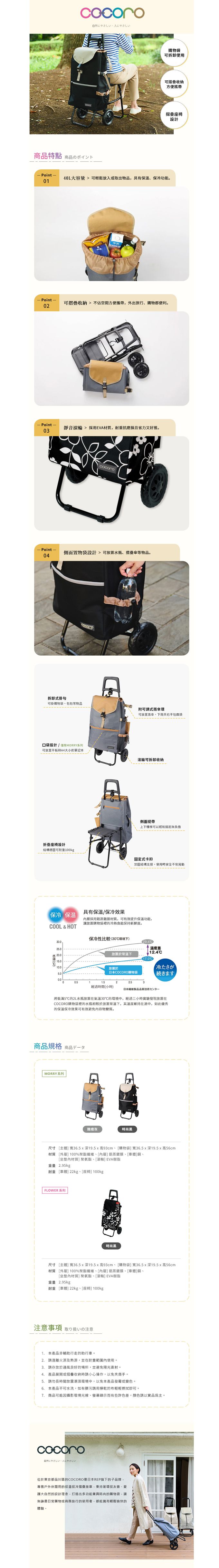 品名:FLOWER 多功能保溫保冷摺疊購物車(附座椅)-40L-多色可選