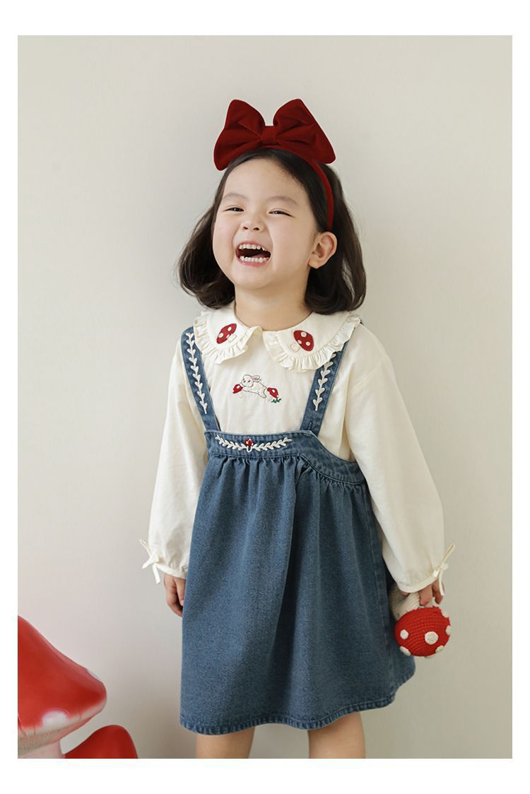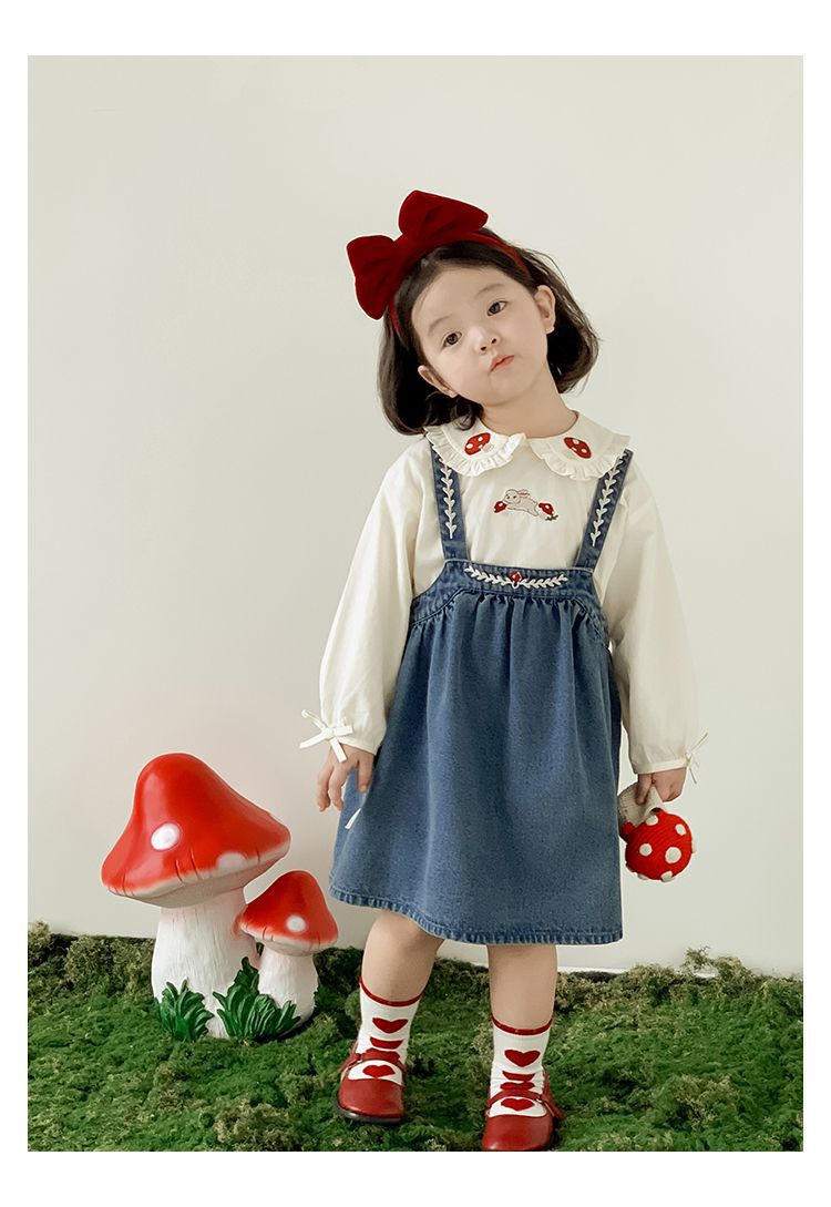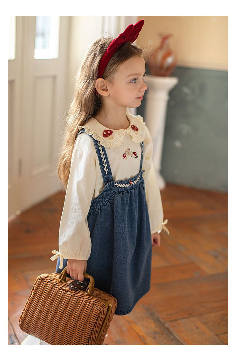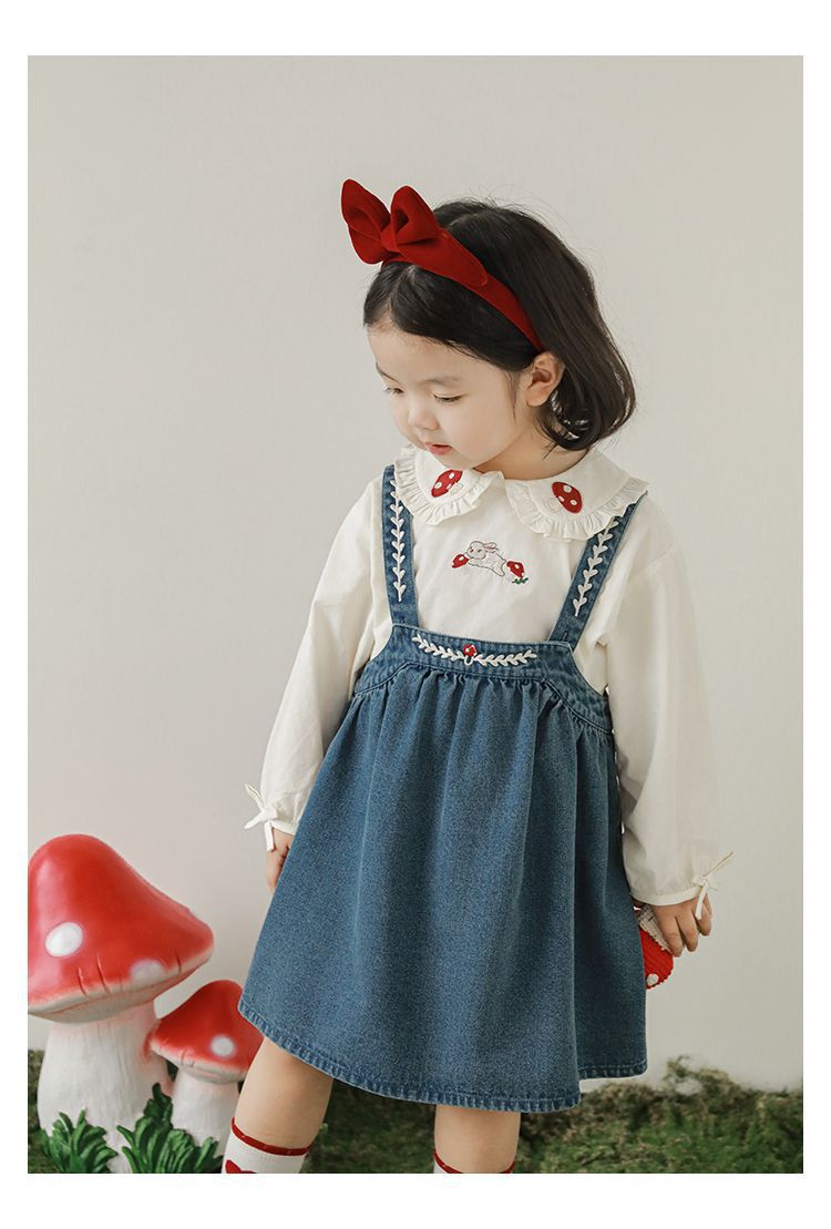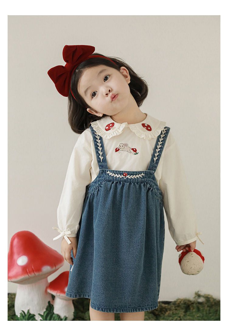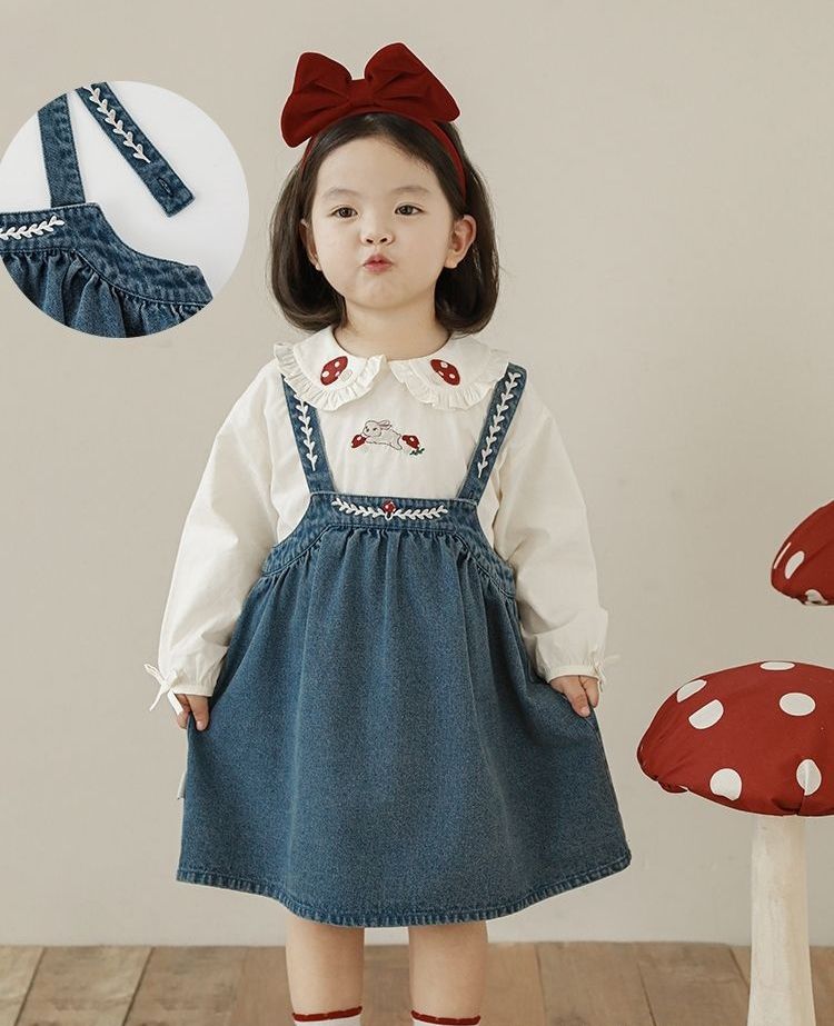 刺繡牛仔吊帶裙/洋裝-藍色