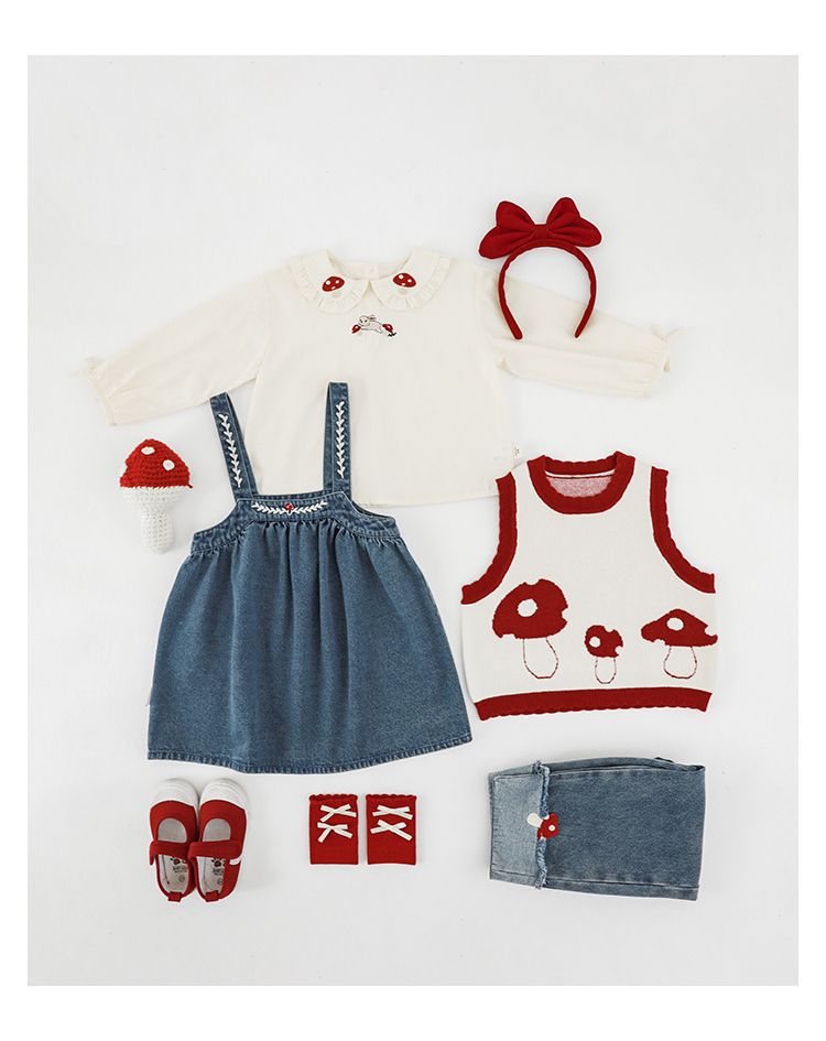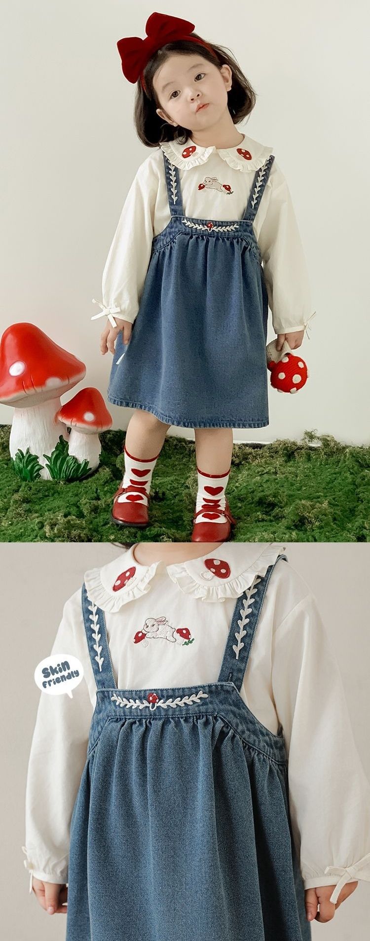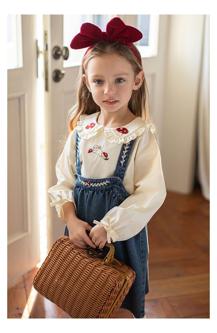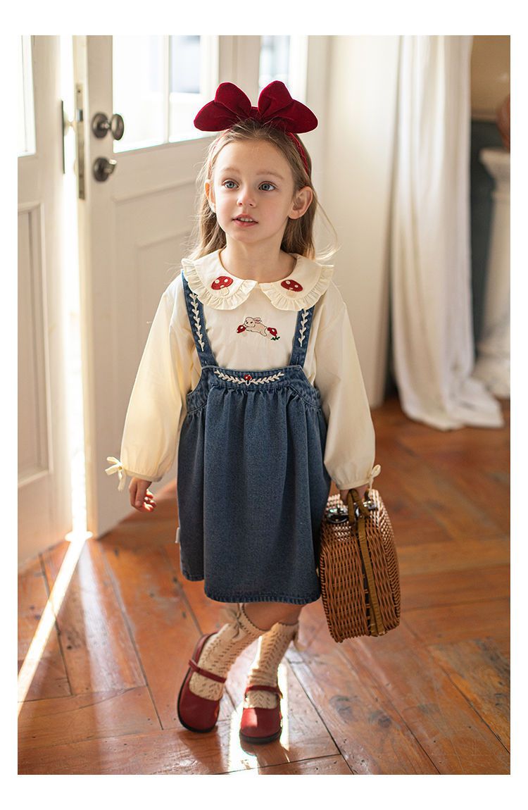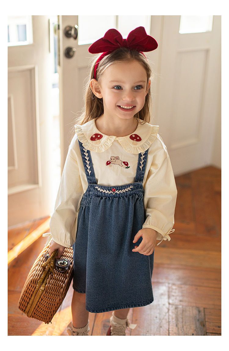 刺繡牛仔吊帶裙/洋裝-藍色