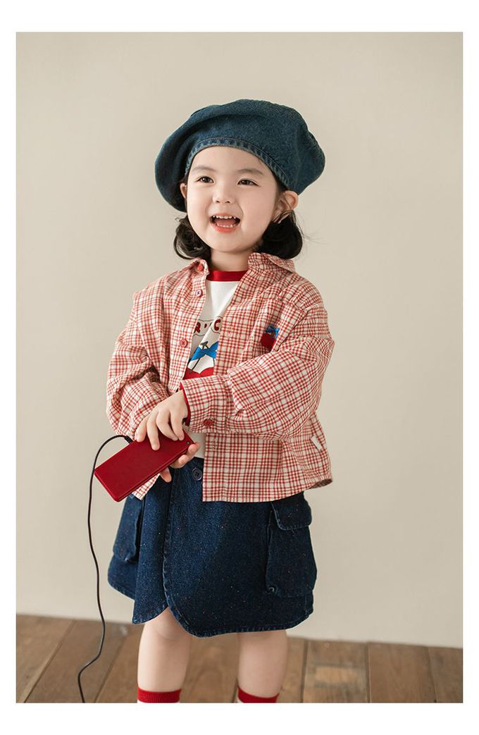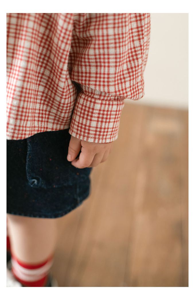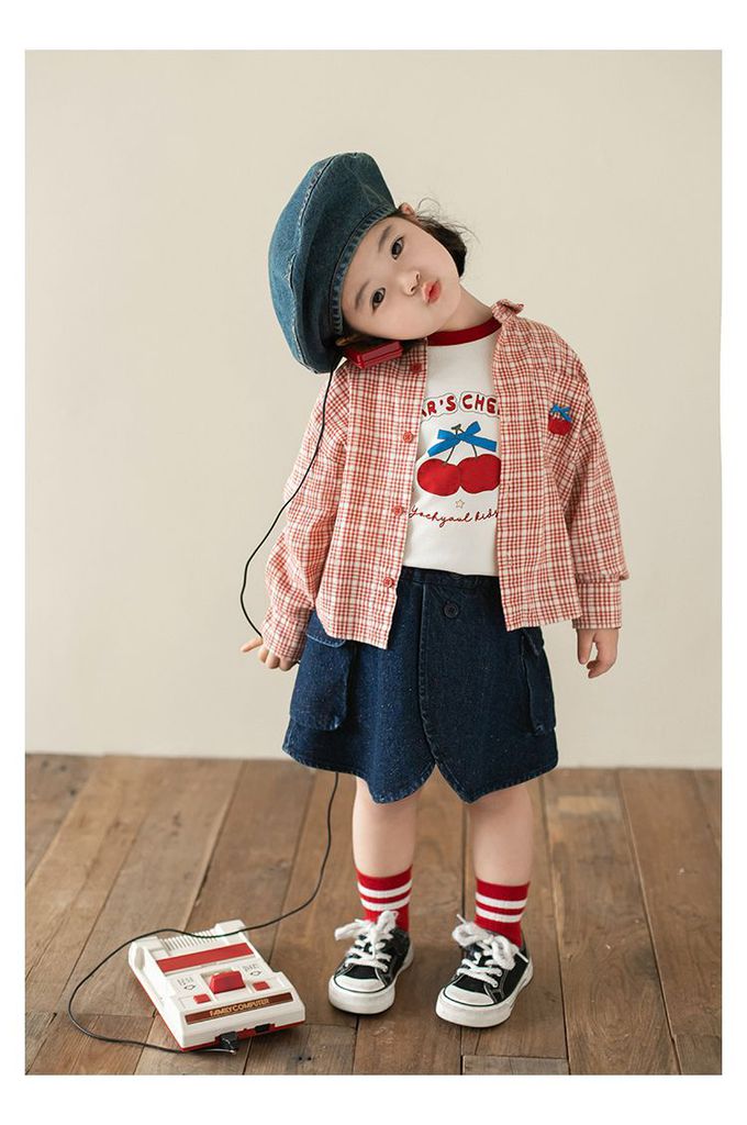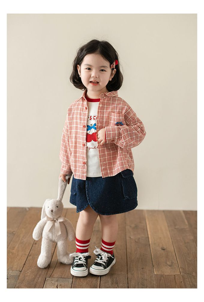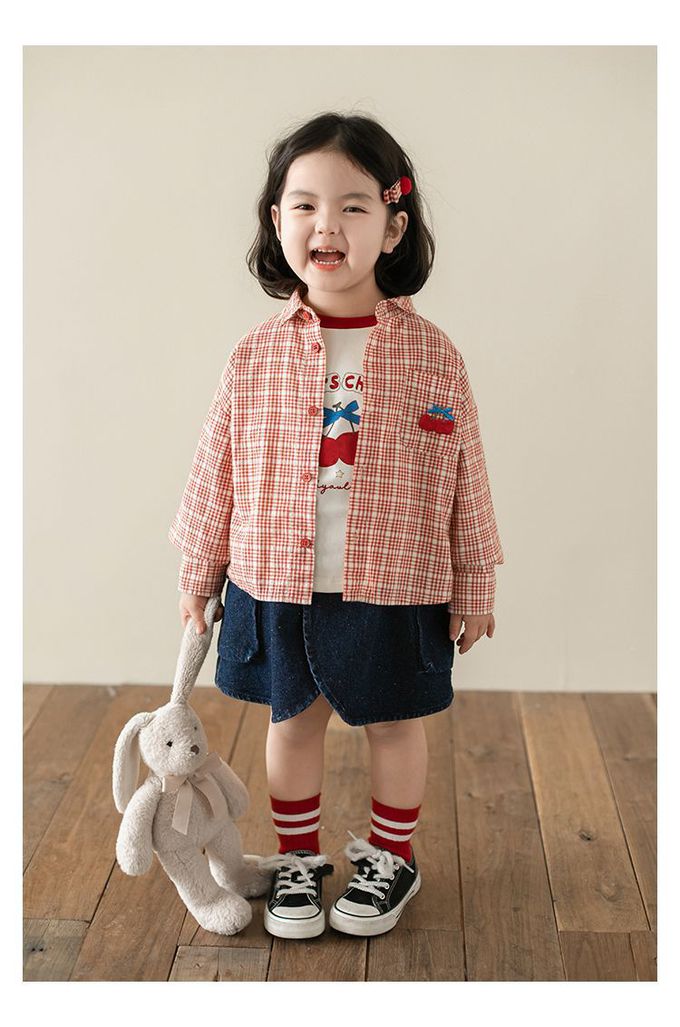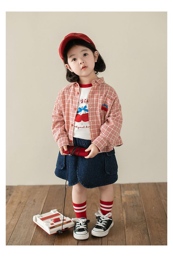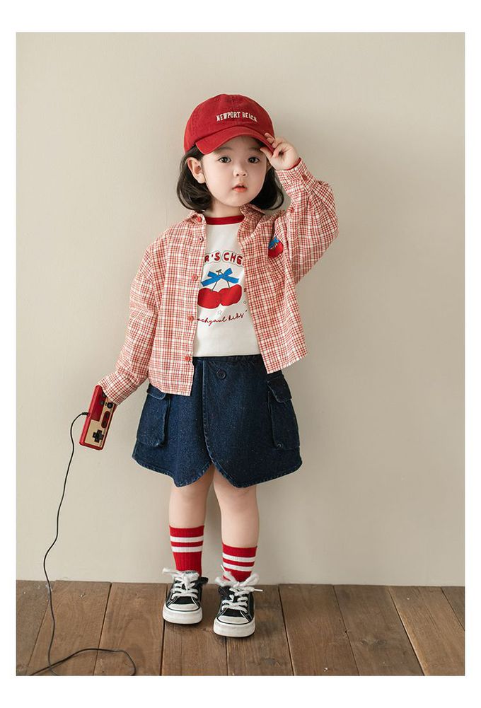百搭翻領刺繡格紋襯衫/外套-小櫻桃-紅色