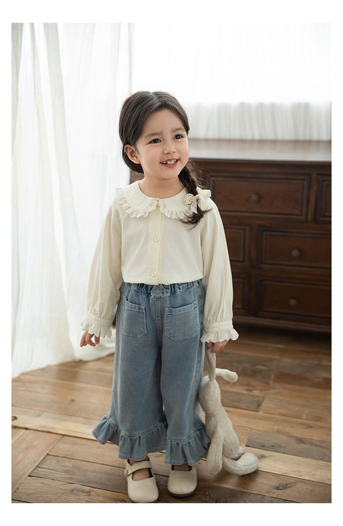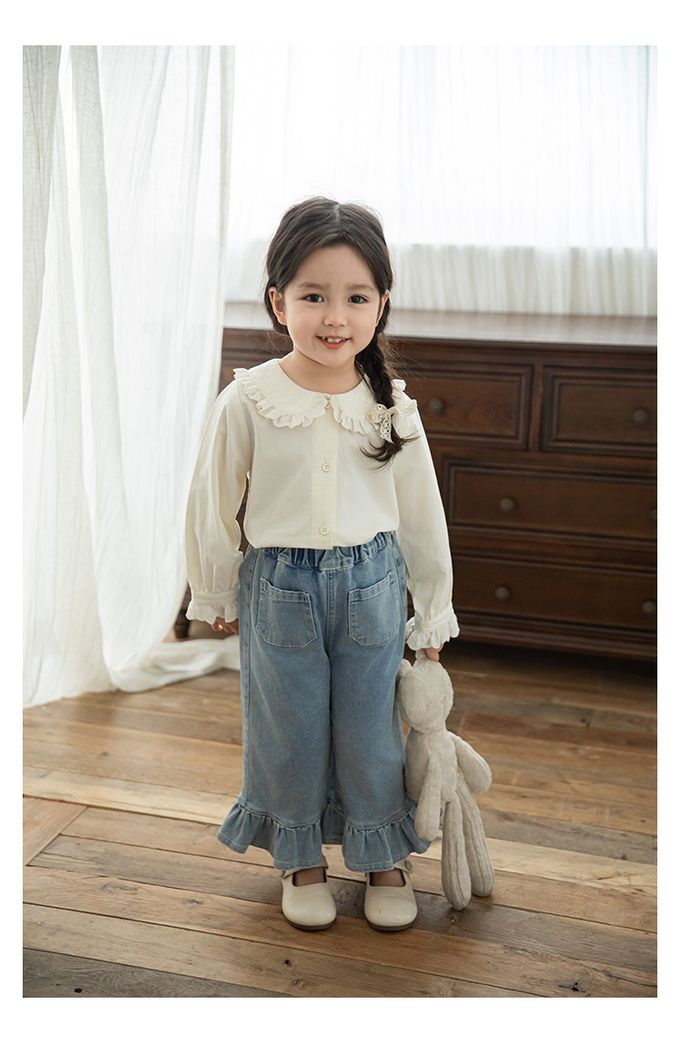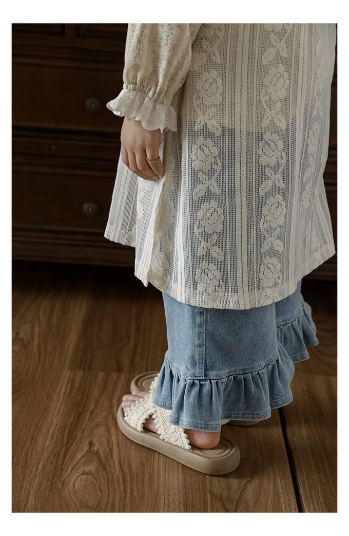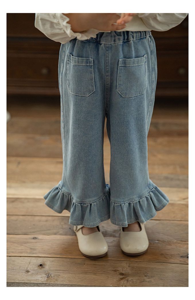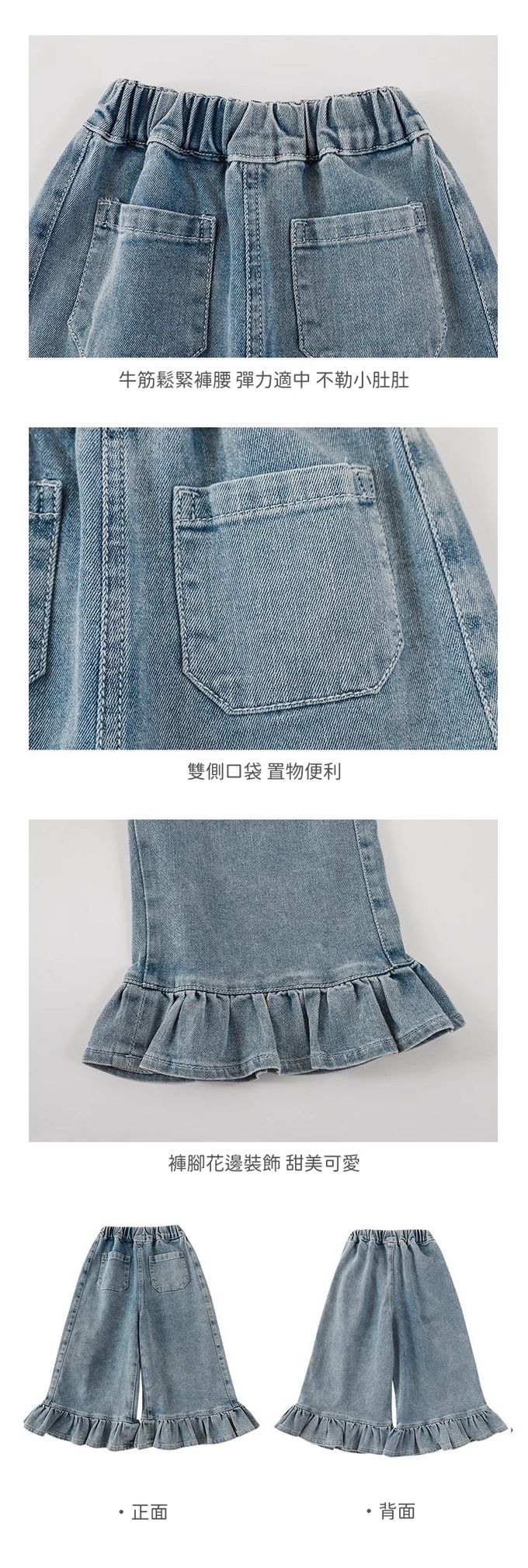 品名:甜美雙口袋荷葉花邊牛仔長褲
