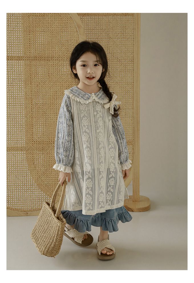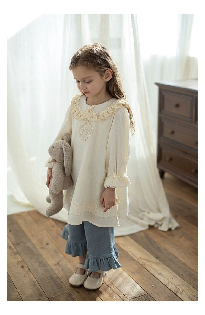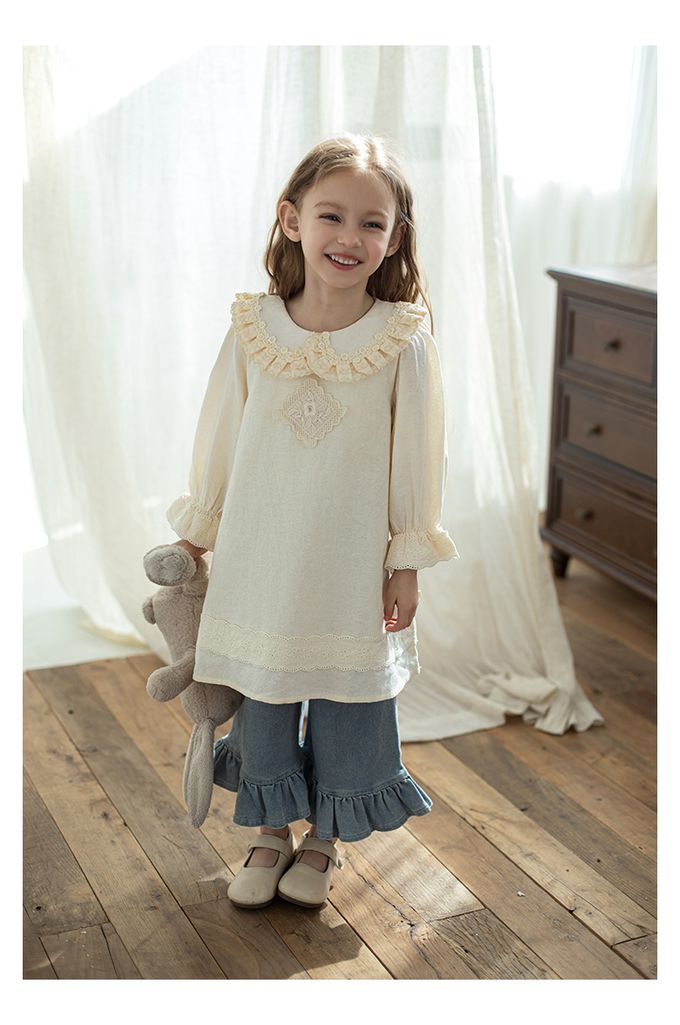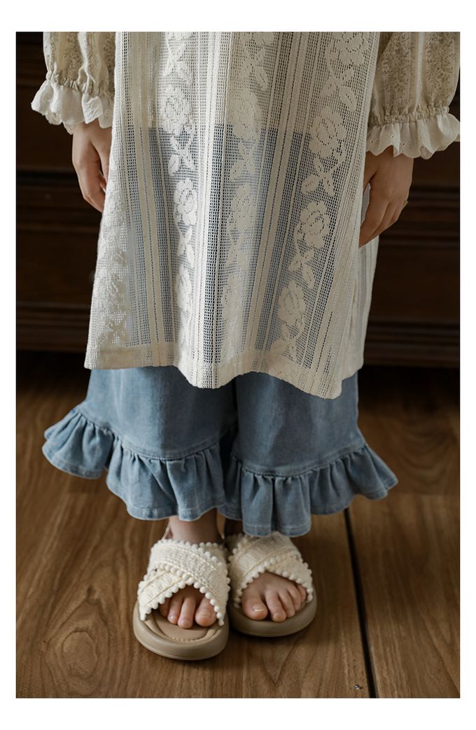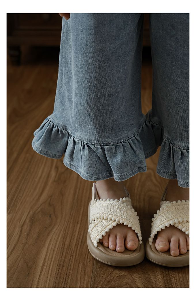 品名:甜美雙口袋荷葉花邊牛仔長褲