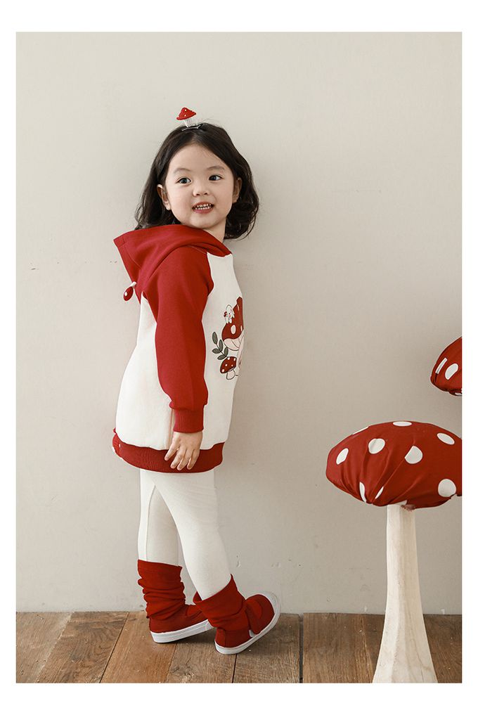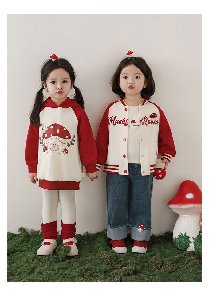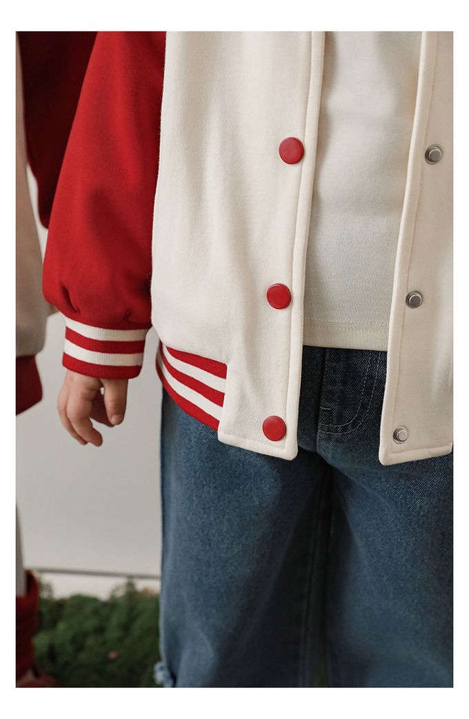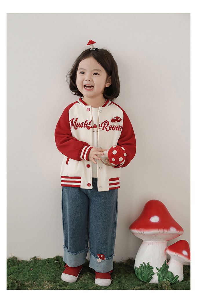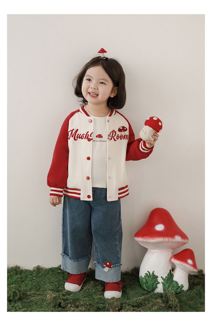 休閒拼色棒球外套-可愛蘑菇-紅色