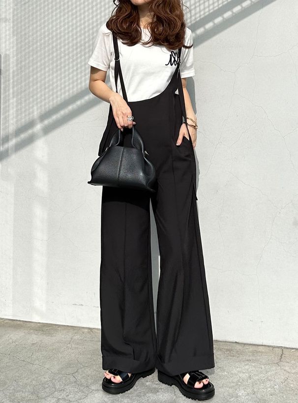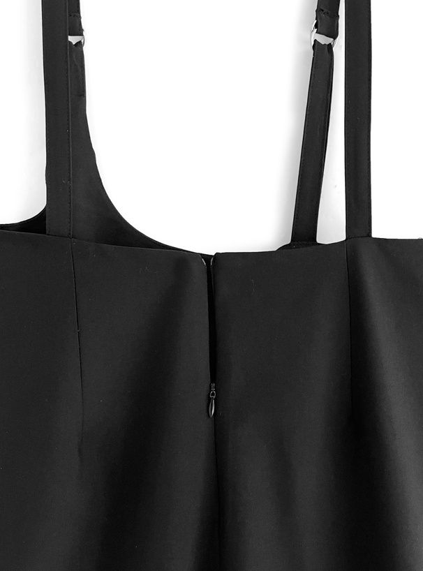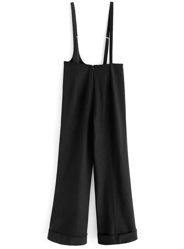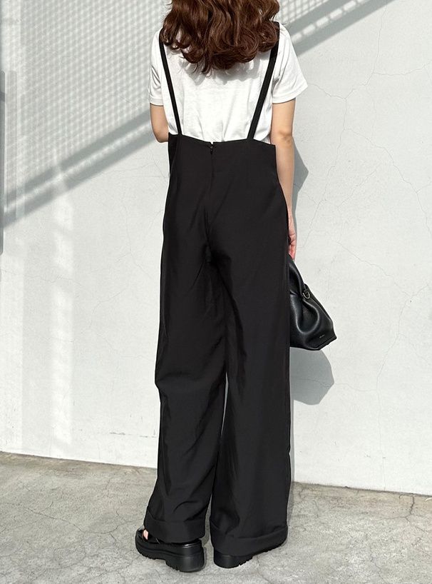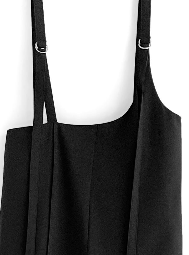 日本 GRL - 不對稱俐落風工裝吊帶褲-黑