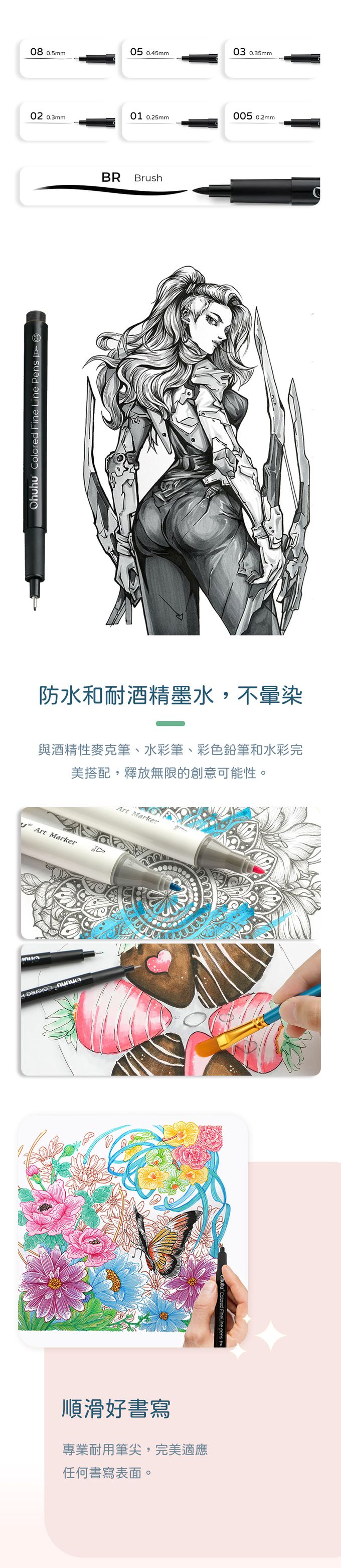 •不易暈染|防水和耐酒精與各種色筆完美搭配