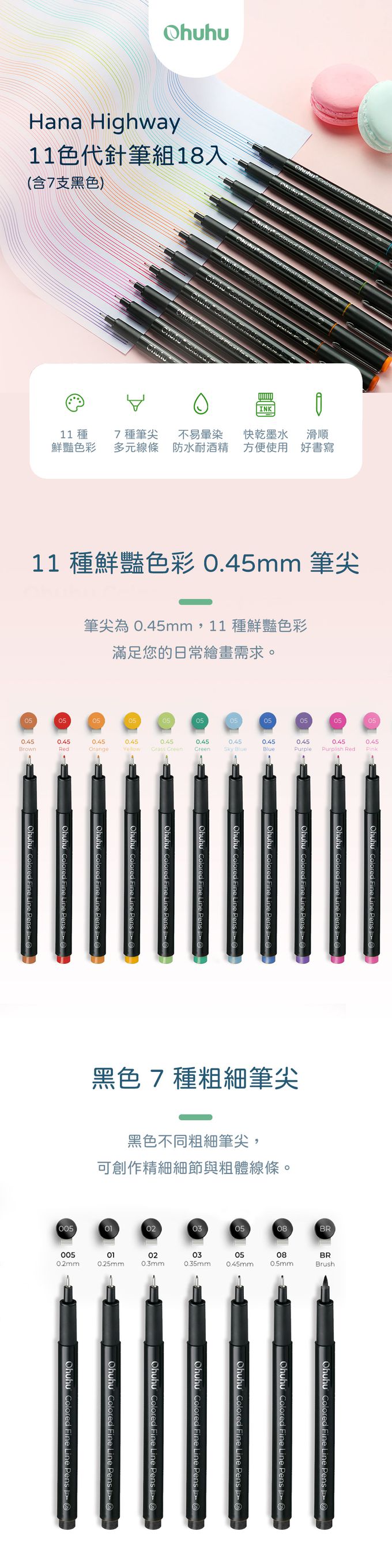 Ohuhu Hana Highway 11色代針筆組18入(含7支黑色)