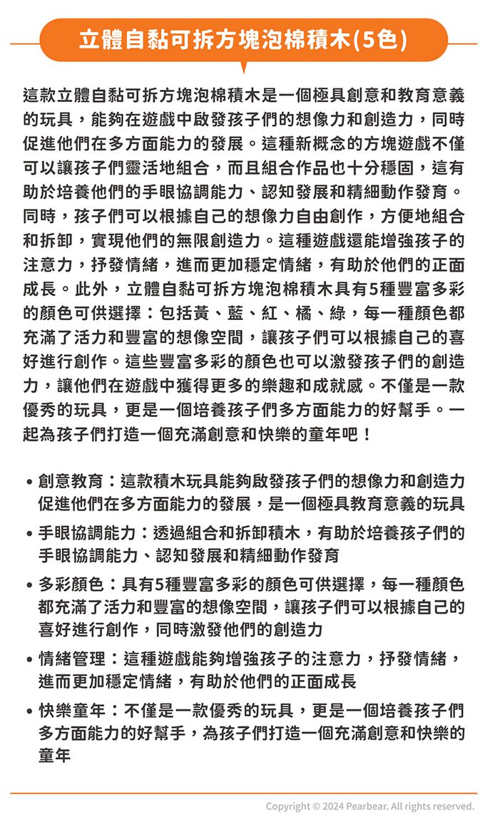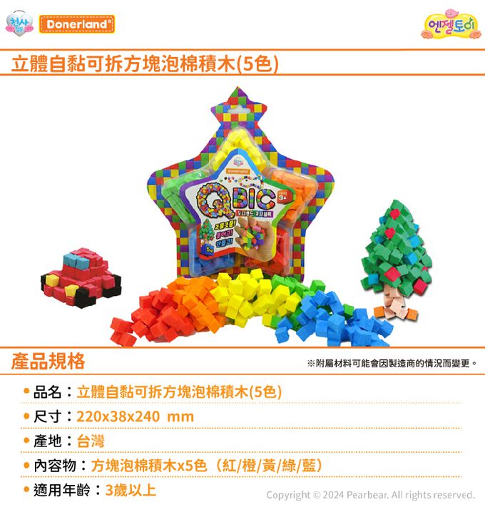 品名:立體自黏可拆方塊泡棉積木(5色)