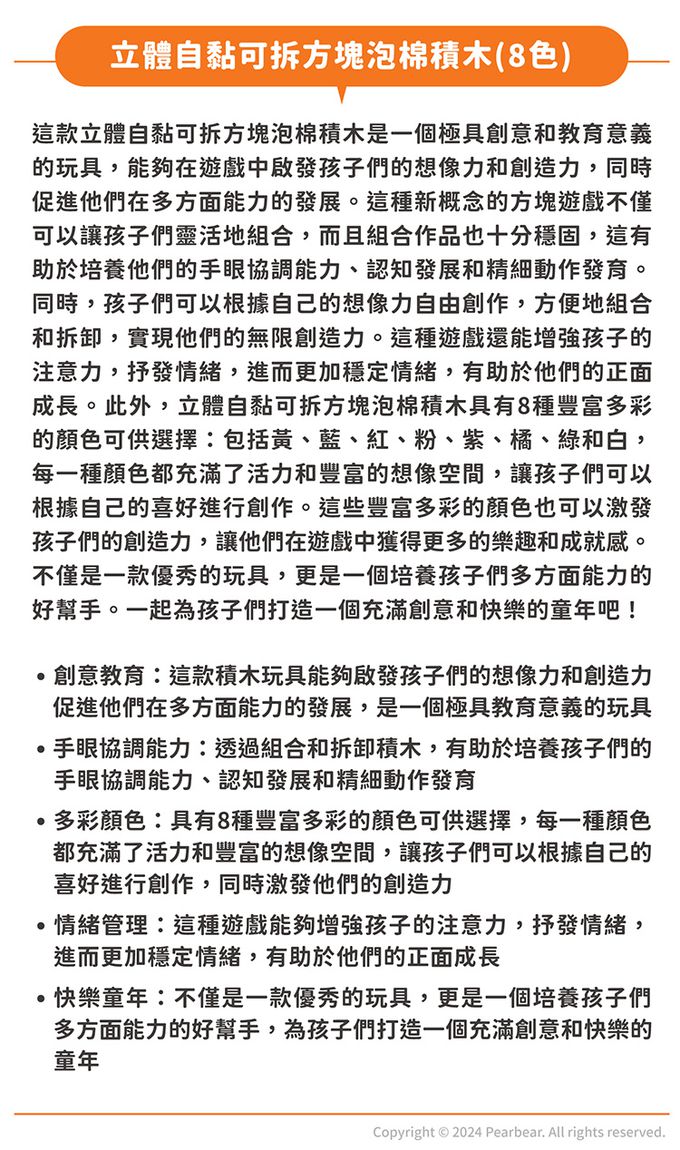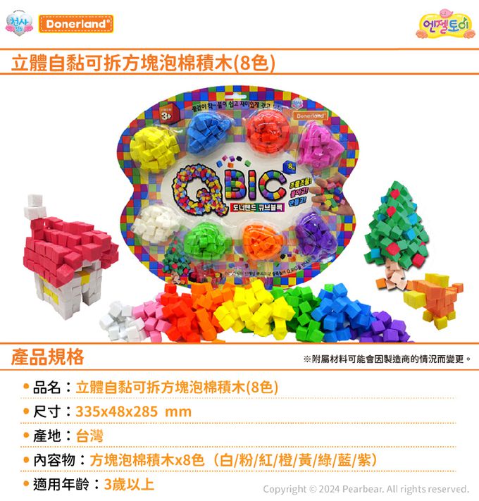 品名:立體自黏可拆方塊泡棉積木(8色)