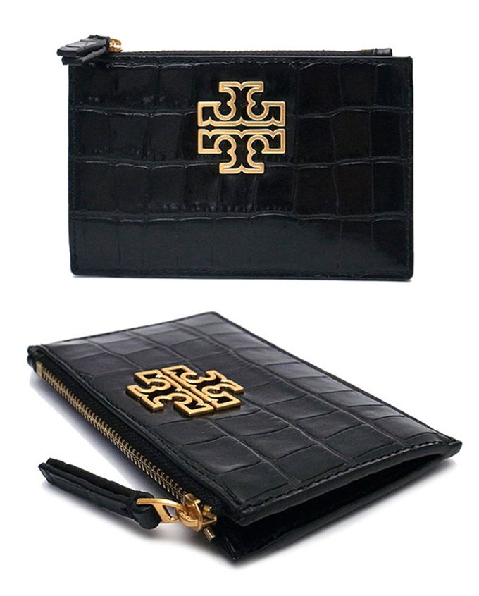 鱷魚紋皮革卡片零錢包 (黑)