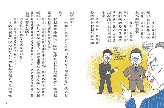 為了充分享受《數學破案神探》系列,最好仔細閱讀。讀這本書時,你就和述理、多彬、舫國一樣,是數學破案神探隊的一員,觀察怪盜羅蘋留下的痕跡,推理出下一個犯罪時間或場所,你也會得到強烈的刺激感和成就感。如果想要提前翻到後面偷看提示或答案,請忍耐一下,因為憑自己的能力解決問題的話,喜悅將會更大!