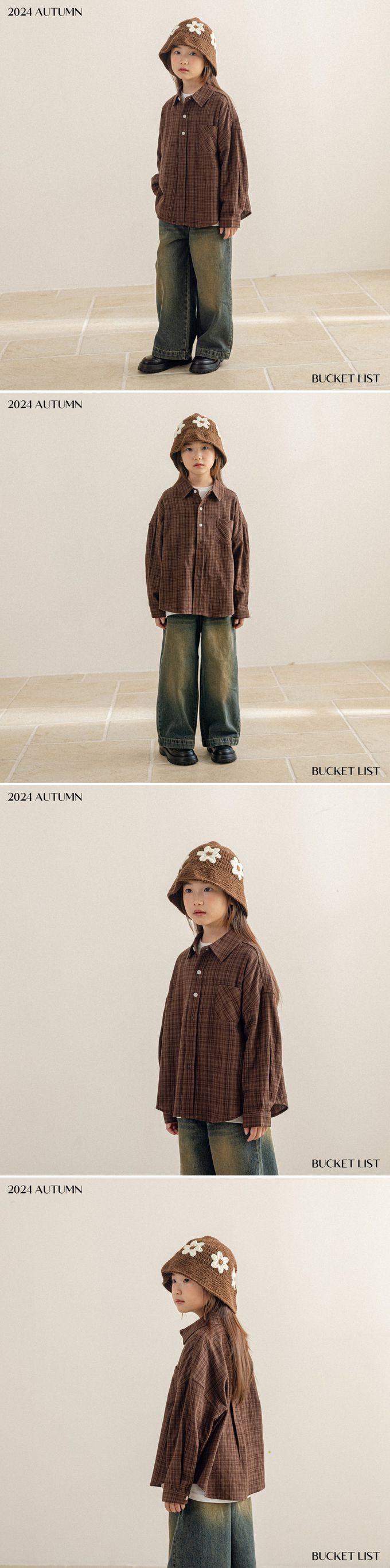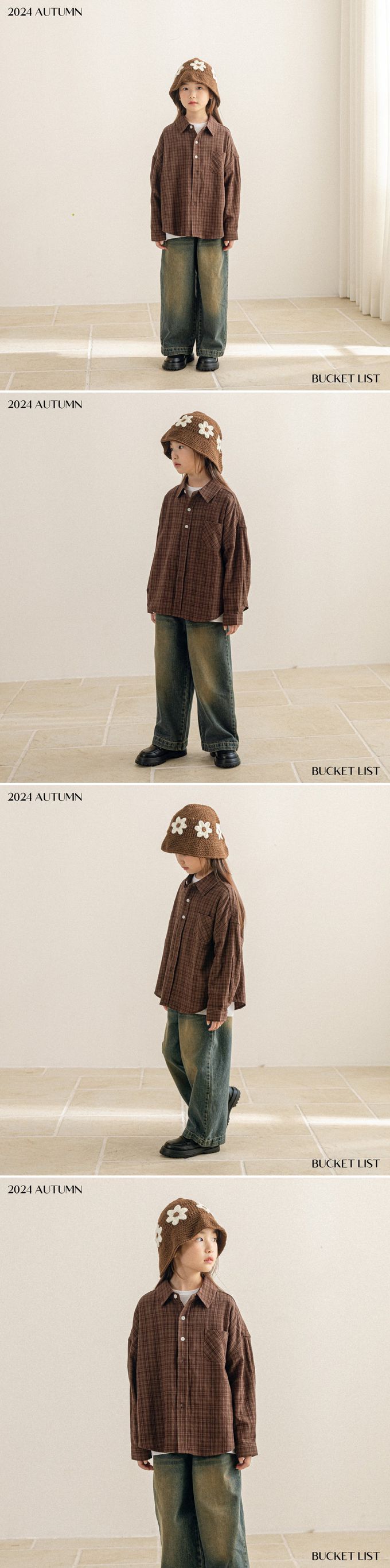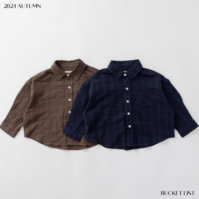 韓國 BUCKET LIST - 慵懶風格紋長袖襯衫/外套-可可咖