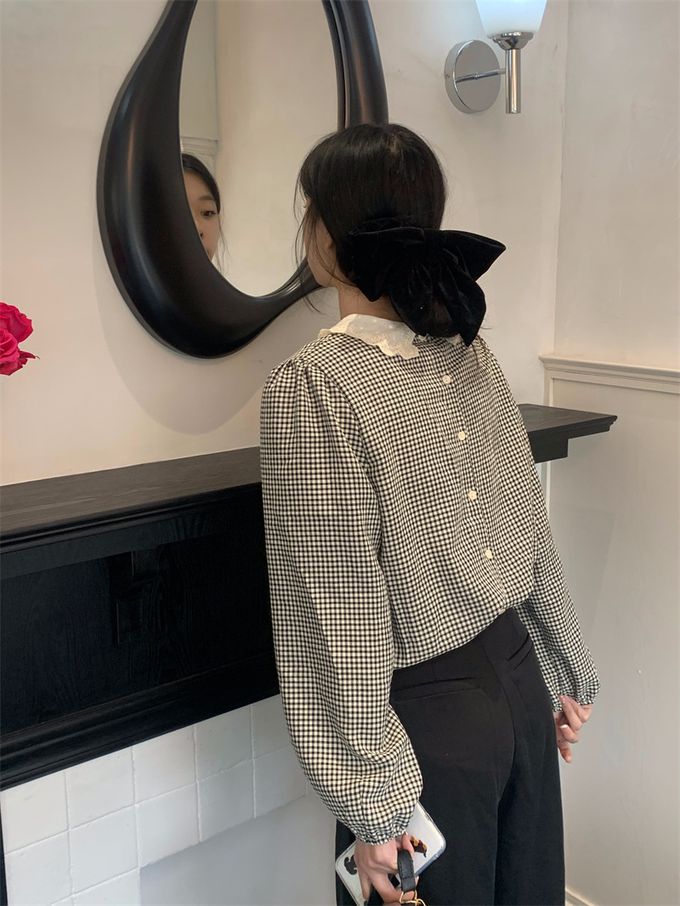 840791 光澤感V領荷葉邊長袖上衣-浪漫紫 (F)