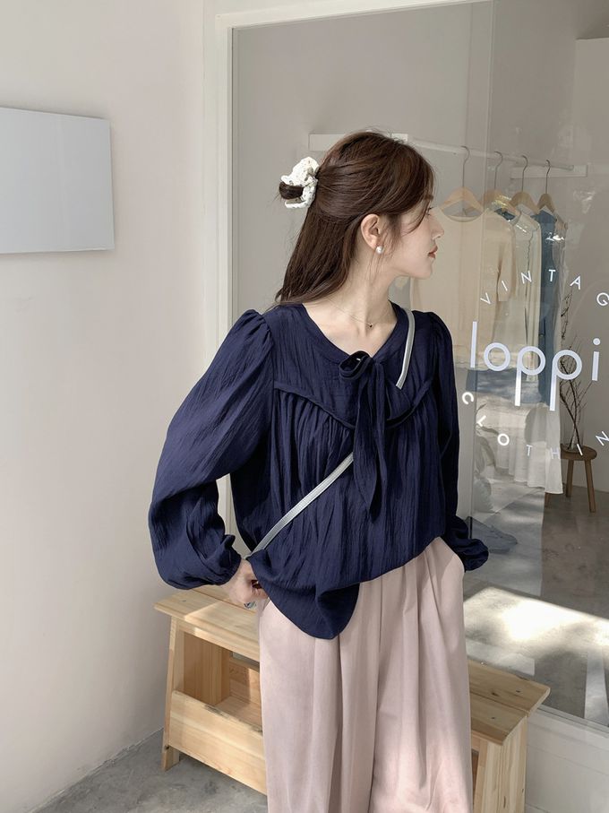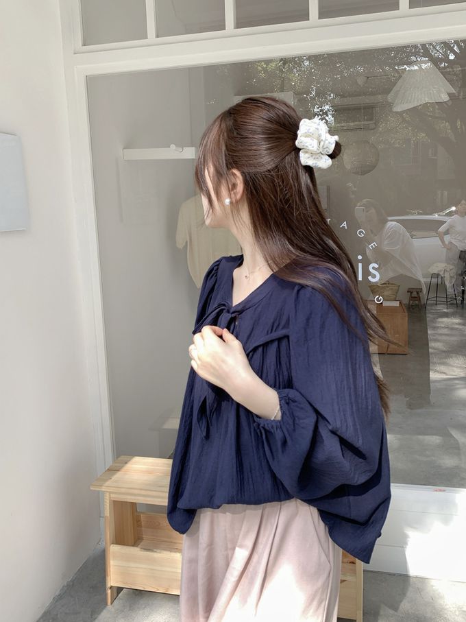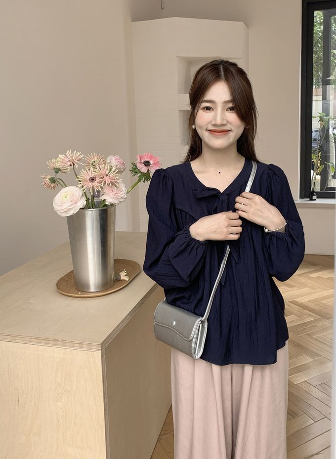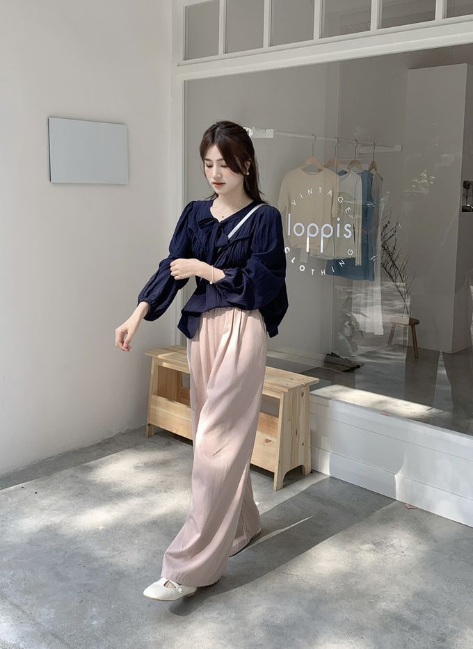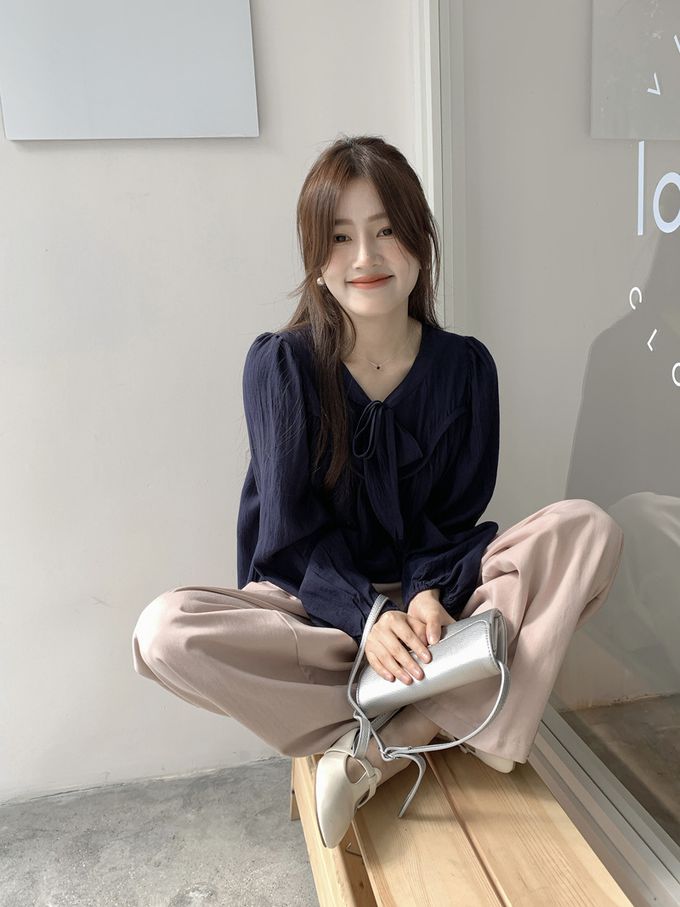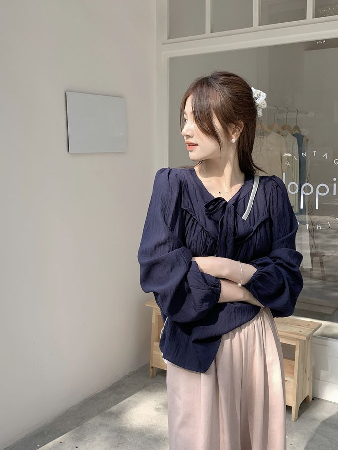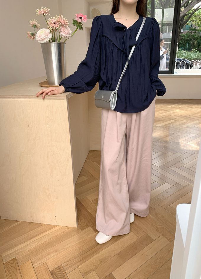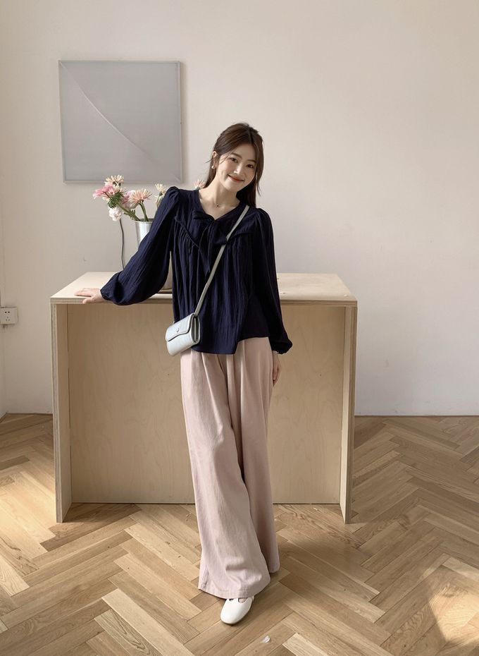840791 光澤感V領荷葉邊長袖上衣-浪漫紫 (F)