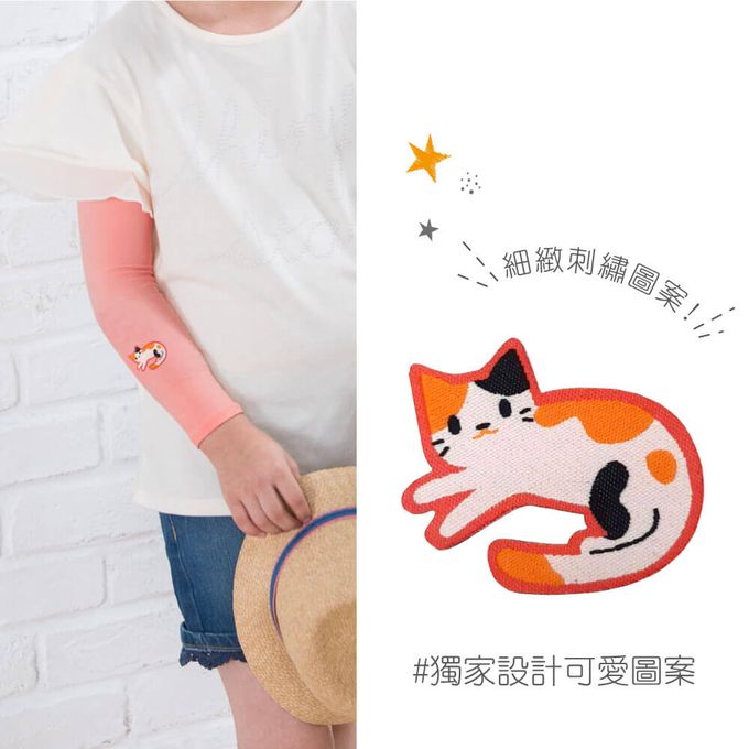 貝柔 Peilou - UPF50+兒童高效涼感防蚊抗UV袖套-(貼布繡)-小貓-橘 (F)