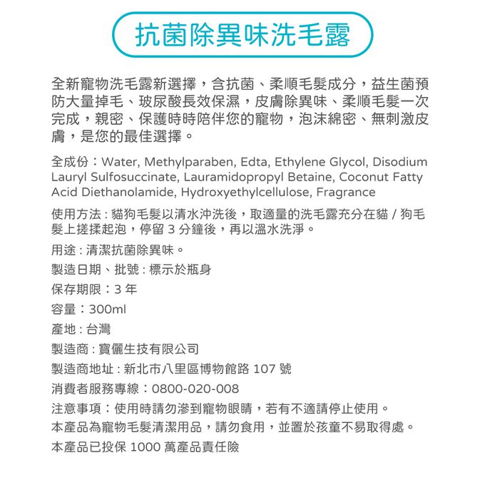 品名:犬貓洗毛露-亮毛柔順(300ml)