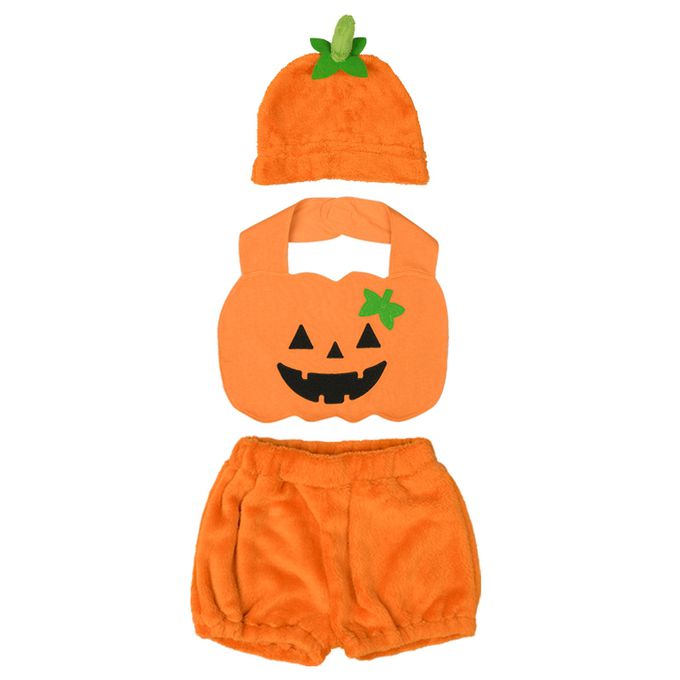 萬聖節 3件組-帽子+圍兜+短褲-橘色 (80~90cm)