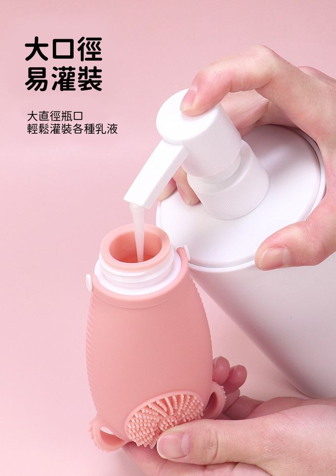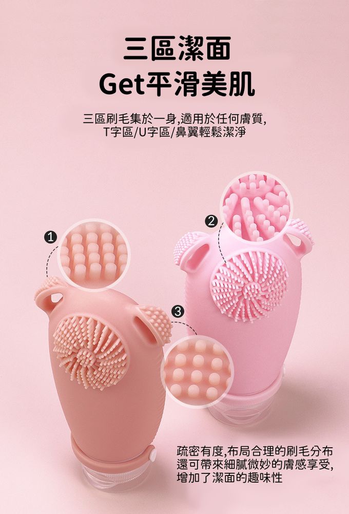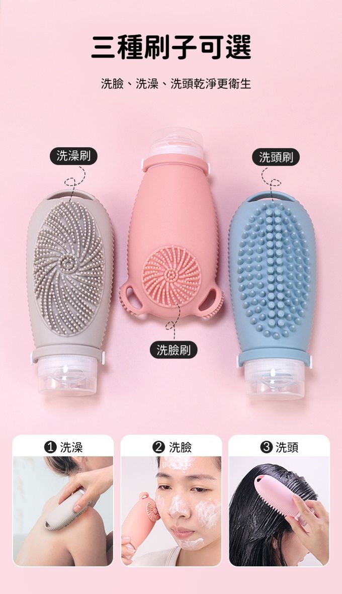 安全防漏 便攜 好清潔 旅行必備矽膠分裝瓶100ml-洗臉專用刷頭-顏色隨機