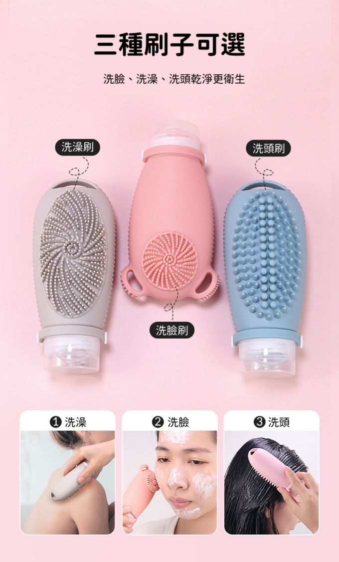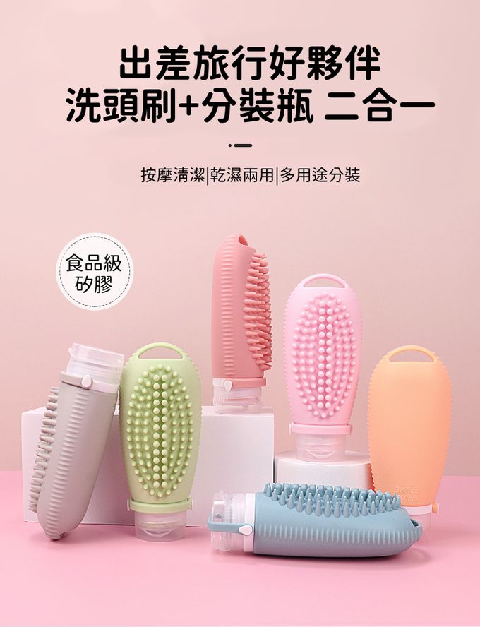二合一洗頭刷+分裝瓶,出門好夥伴