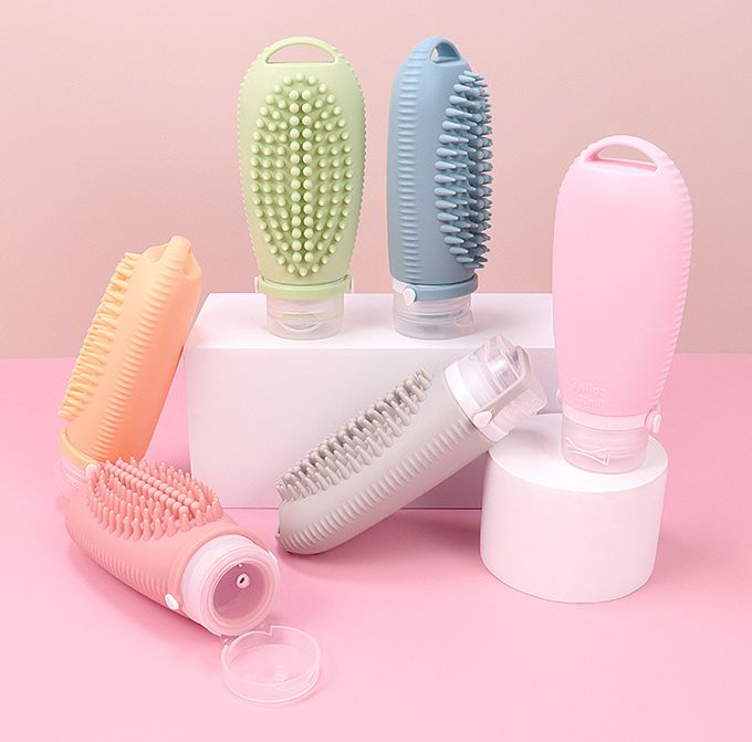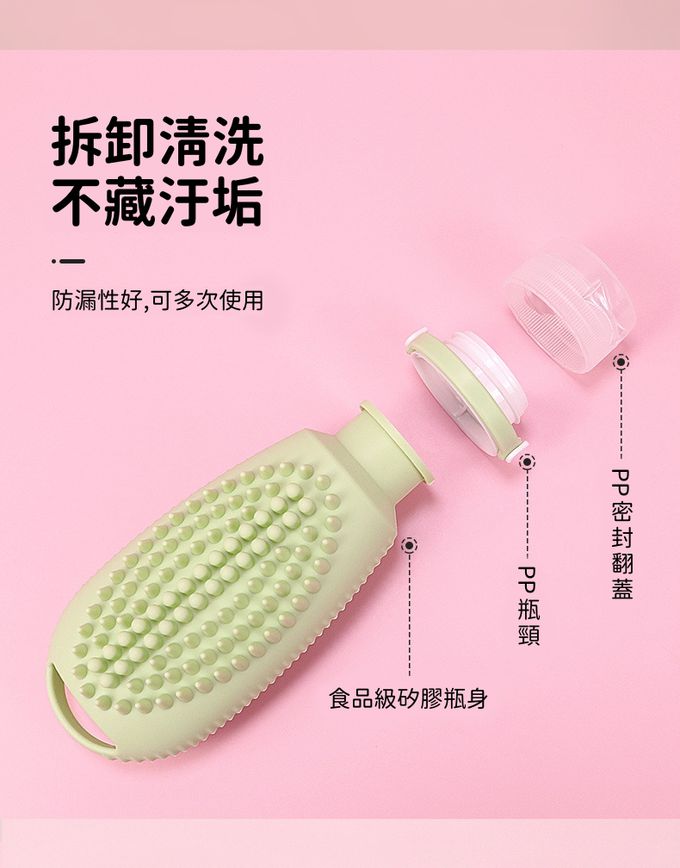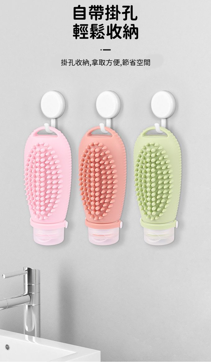 安全防漏 便攜 好清潔 旅行必備矽膠分裝瓶100ml-洗頭專用刷頭-顏色隨機