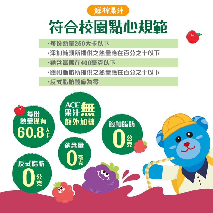 • 符合台灣教育部校園點心規範