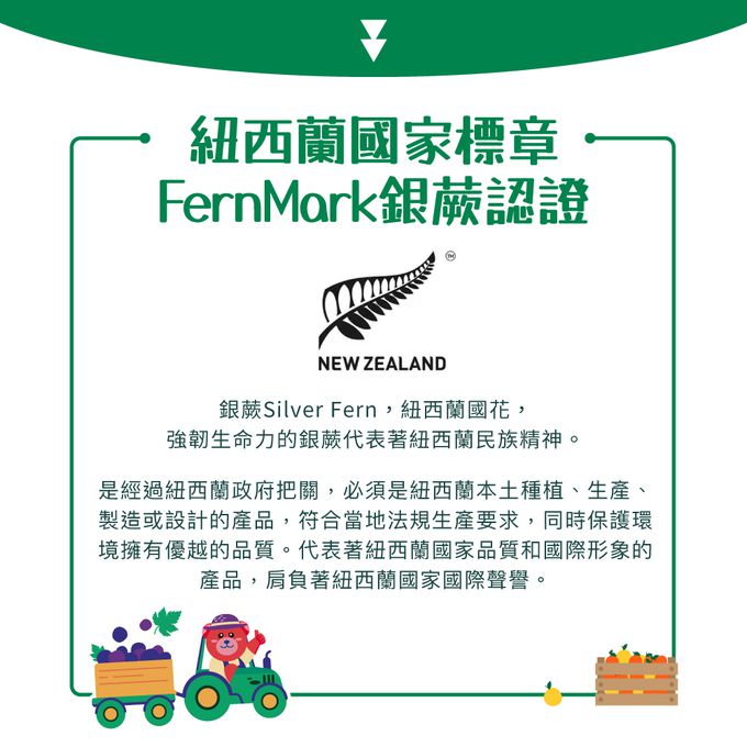 • 紐西蘭國家級標章FernMark銀蕨認證